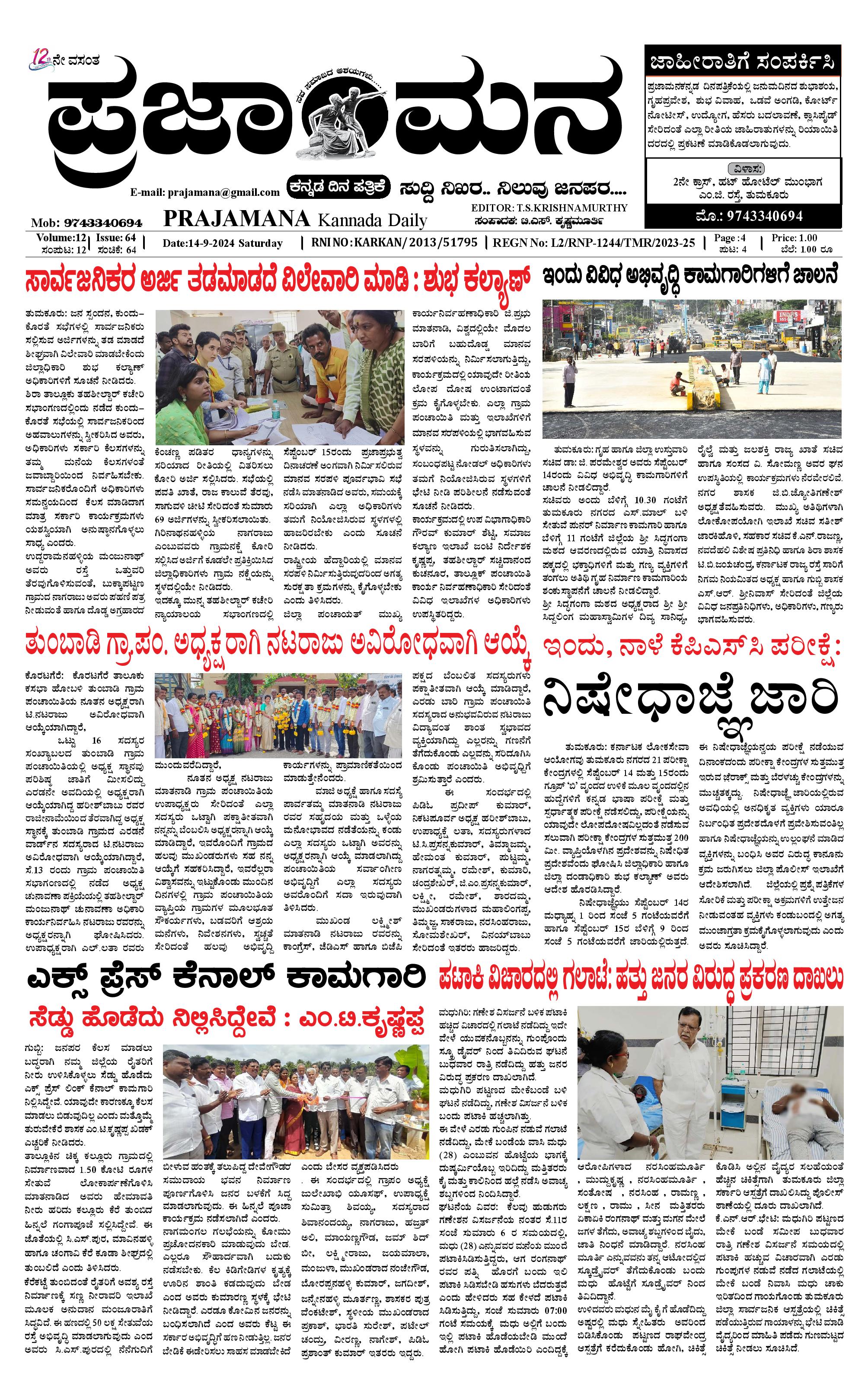 ಪ್ರಜಾಮನ 14 SEPTEMBER 2024 September 14, 2024 << First << 1 >> Last >> Page 1Page 2Page 3Page 4 × ಪ್ರಜಾಮನ 14 SEPTEMBER 2024 PRAJAMANA-page-001PRAJAMANA-page-002PRAJAMANA-page-003PRAJAMANA-page-004 << First << 1 >> Last >> PRAJAMANA-page-001PRAJAMANA-page-002PRAJAMANA-page-003PRAJAMANA-page-004 PRAJAMANA-page-001