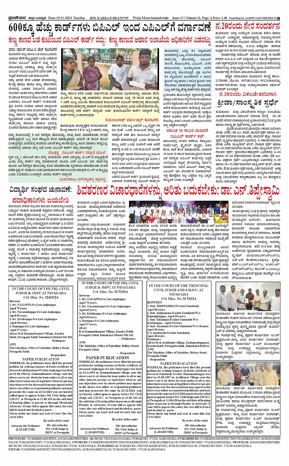 ಪ್ರಜಾಮನ 19 NOVEMBER 2024 Page: 4 November 19, 2024 << First << 4 >> Last >> Page 1Page 2Page 3Page 4 × ಪ್ರಜಾಮನ 19 NOVEMBER 2024 PRAJAMANA-page-001PRAJAMANA-page-002PRAJAMANA-page-003PRAJAMANA-page-004 << First << 4 >> Last >> PRAJAMANA-page-001PRAJAMANA-page-002PRAJAMANA-page-003PRAJAMANA-page-004 PRAJAMANA-page-004
