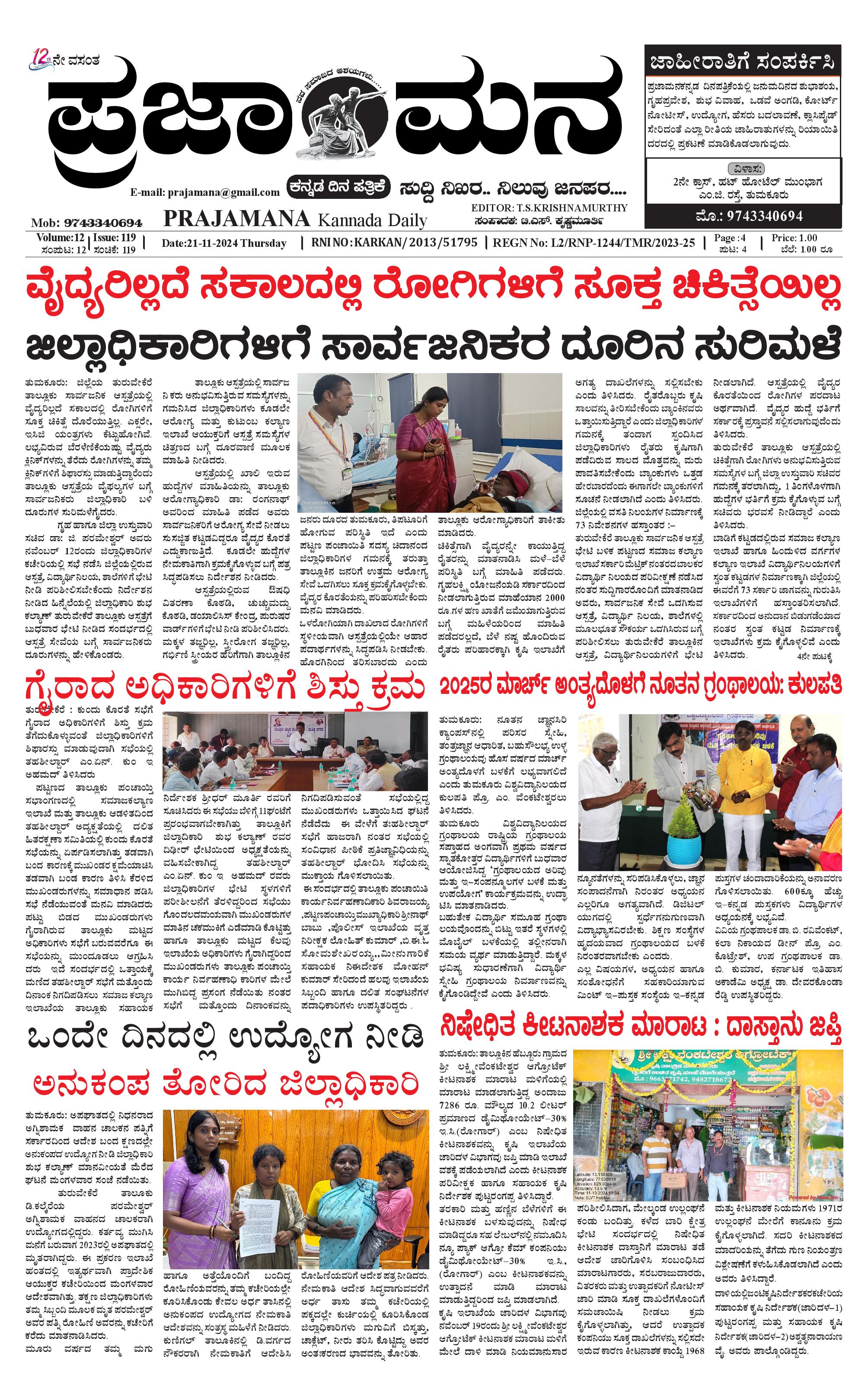 ಪ್ರಜಾಮನ 21 NOVEMBER 2024 November 21, 2024 << First << 1 >> Last >> Page 1Page 2Page 3Page 4 × ಪ್ರಜಾಮನ 21 NOVEMBER 2024 PRAJAMANA-page-001PRAJAMANA-page-002PRAJAMANA-page-003PRAJAMANA-page-004 << First << 1 >> Last >> PRAJAMANA-page-001PRAJAMANA-page-002PRAJAMANA-page-003PRAJAMANA-page-004 PRAJAMANA-page-001