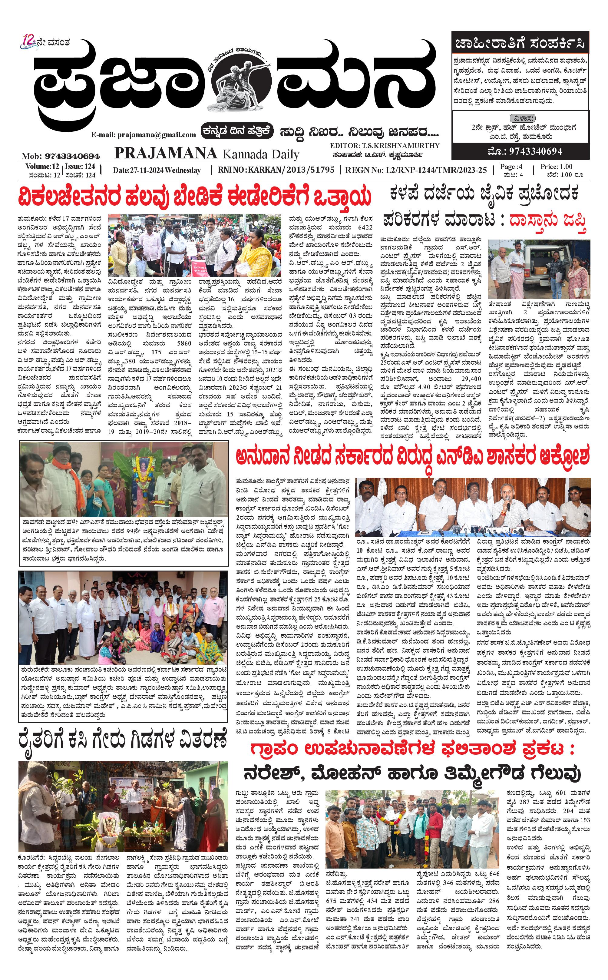 ಪ್ರಜಾಮನ 27 NOVEMBER 2024 November 27, 2024 << First << 1 >> Last >> Page 1Page 2Page 3Page 4 × ಪ್ರಜಾಮನ 27 NOVEMBER 2024 PRAJAMANA-page-001PRAJAMANA-page-002PRAJAMANA-page-003PRAJAMANA-page-004 << First << 1 >> Last >> PRAJAMANA-page-001PRAJAMANA-page-002PRAJAMANA-page-003PRAJAMANA-page-004 PRAJAMANA-page-001
