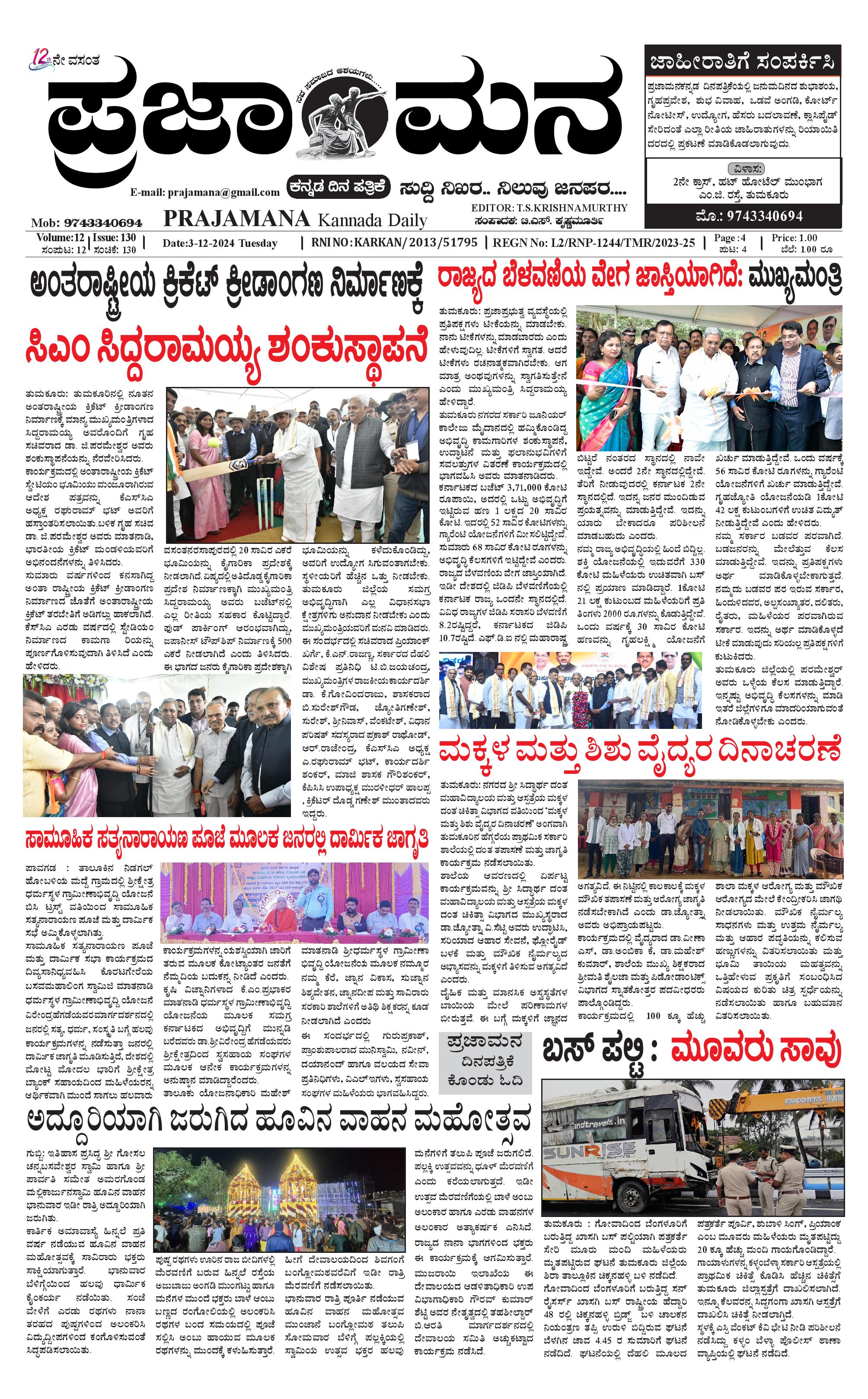 ಪ್ರಜಾಮನ 3 DECEMBER 2024 December 03, 2024 << First << 1 >> Last >> Page 1Page 2Page 3Page 4 × ಪ್ರಜಾಮನ 3 DECEMBER 2024 PRAJAMANA-page-001-1PRAJAMANA-page-002-1PRAJAMANA-page-003-1PRAJAMANA-page-004-1 << First << 1 >> Last >> PRAJAMANA-page-001-1PRAJAMANA-page-002-1PRAJAMANA-page-003-1PRAJAMANA-page-004-1 PRAJAMANA-page-001-1