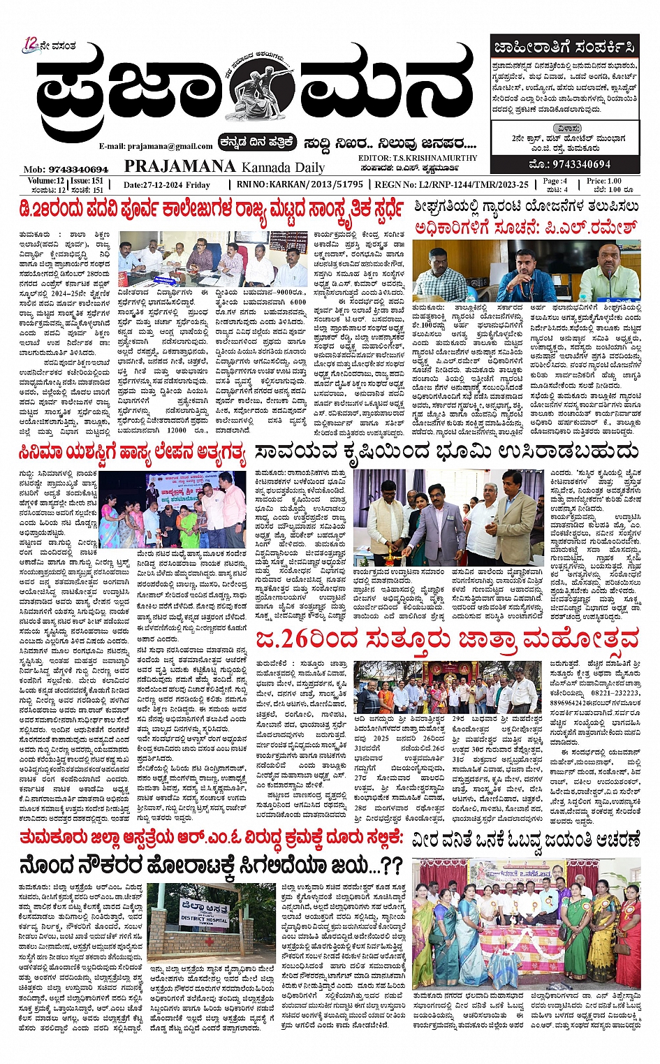 ಪ್ರಜಾಮನ 27 DECEMBER 2024 December 27, 2024 << First << 1 >> Last >> Page 1Page 2Page 3Page 4 × ಪ್ರಜಾಮನ 27 DECEMBER 2024 PRAJAMANA-page-001PRAJAMANA 1-page-002PRAJAMANA 1-page-003PRAJAMANA-page-004 << First << 1 >> Last >> PRAJAMANA-page-001PRAJAMANA 1-page-002PRAJAMANA 1-page-003PRAJAMANA-page-004 PRAJAMANA-page-001