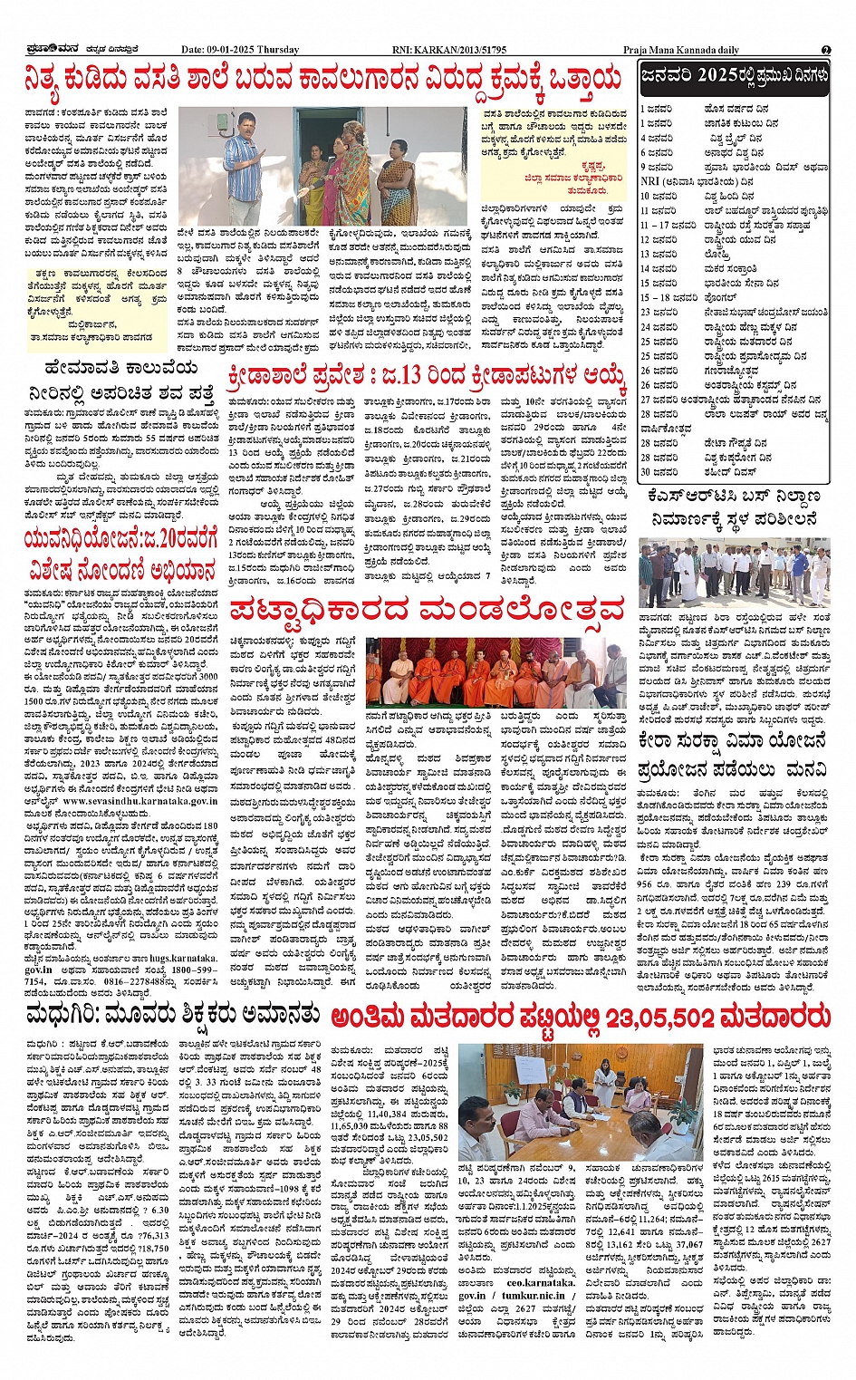 ಪ್ರಜಾಮನ 9 JANUARY 2025 Page: 2 January 09, 2025 << First << 2 >> Last >> Page 1Page 2Page 3Page 4 × ಪ್ರಜಾಮನ 9 JANUARY 2025 PRAJAMANA-page-001PRAJAMANA-page-002PRAJAMANA-page-003PRAJAMANA-page-004 << First << 2 >> Last >> PRAJAMANA-page-001PRAJAMANA-page-002PRAJAMANA-page-003PRAJAMANA-page-004 PRAJAMANA-page-002