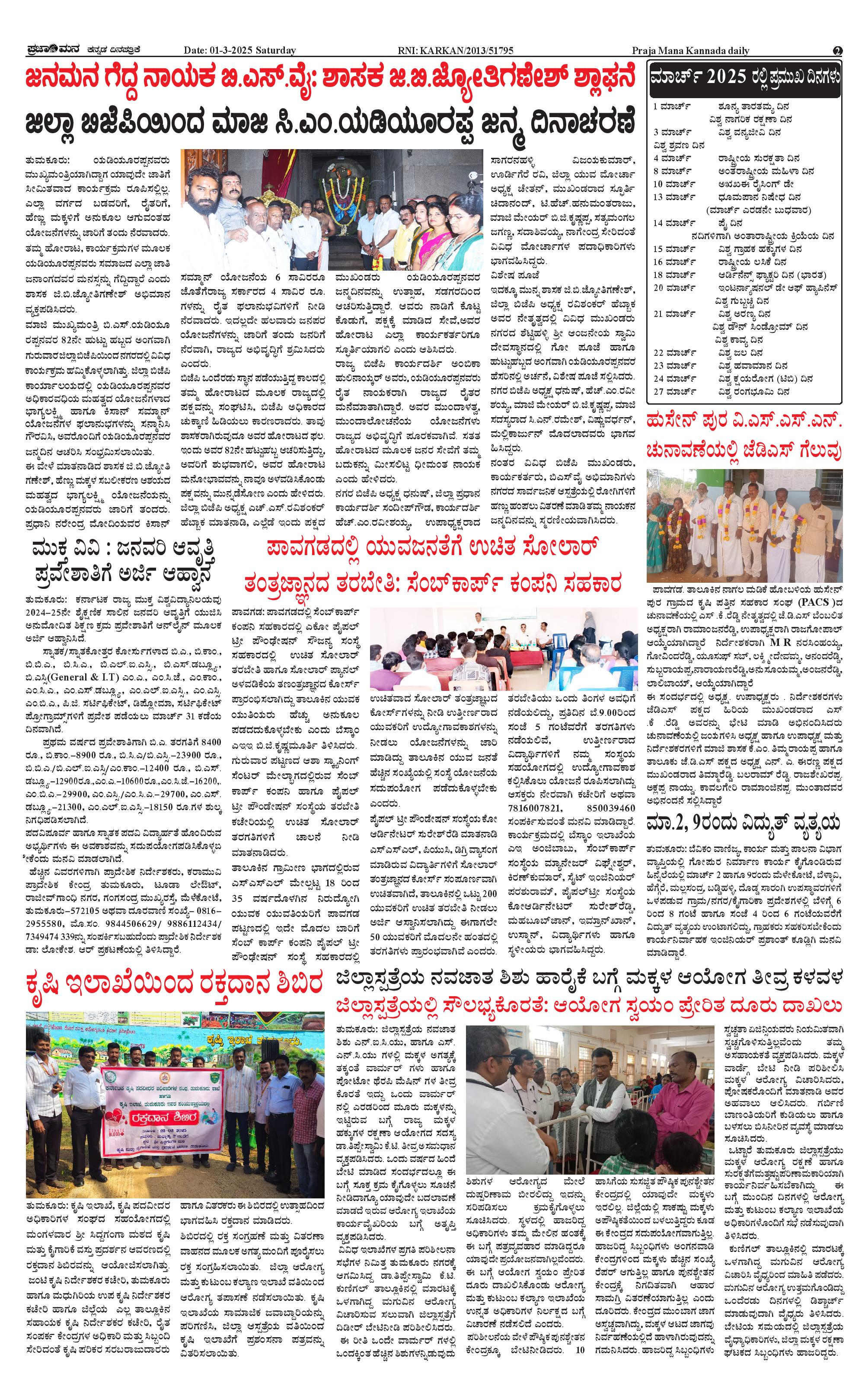 ಪ್ರಜಾಮನ 01 MARCH 2025 Page: 2 March 01, 2025 << First << 2 >> Last >> Page 1Page 2Page 3Page 4 × ಪ್ರಜಾಮನ 01 MARCH 2025 PRAJAMANA 1-page-001PRAJAMANA-page-002PRAJAMANA-page-003PRAJAMANA 1-page-004 << First << 2 >> Last >> PRAJAMANA 1-page-001PRAJAMANA-page-002PRAJAMANA-page-003PRAJAMANA 1-page-004 PRAJAMANA-page-002