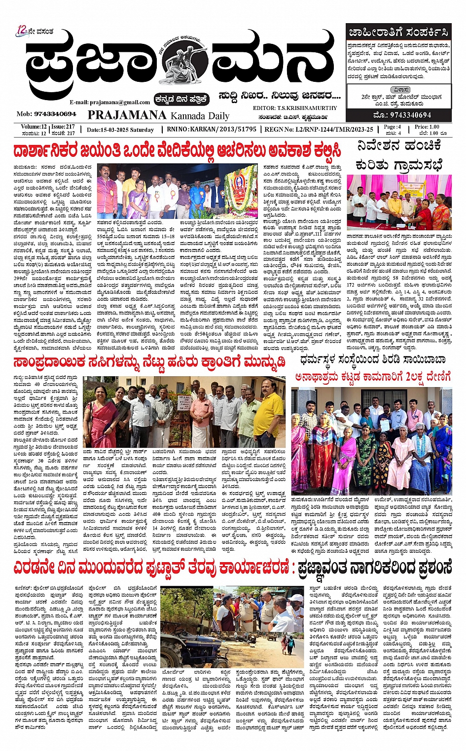 ಪ್ರಜಾಮನ 15 MARCH 2025 March 15, 2025 << First << 1 >> Last >> Page 1Page 2Page 3Page 4 × ಪ್ರಜಾಮನ 15 MARCH 2025 PRAJAMANA-page-001PRAJAMANA-page-002PRAJAMANA-page-003PRAJAMANA-page-004 << First << 1 >> Last >> PRAJAMANA-page-001PRAJAMANA-page-002PRAJAMANA-page-003PRAJAMANA-page-004 PRAJAMANA-page-001