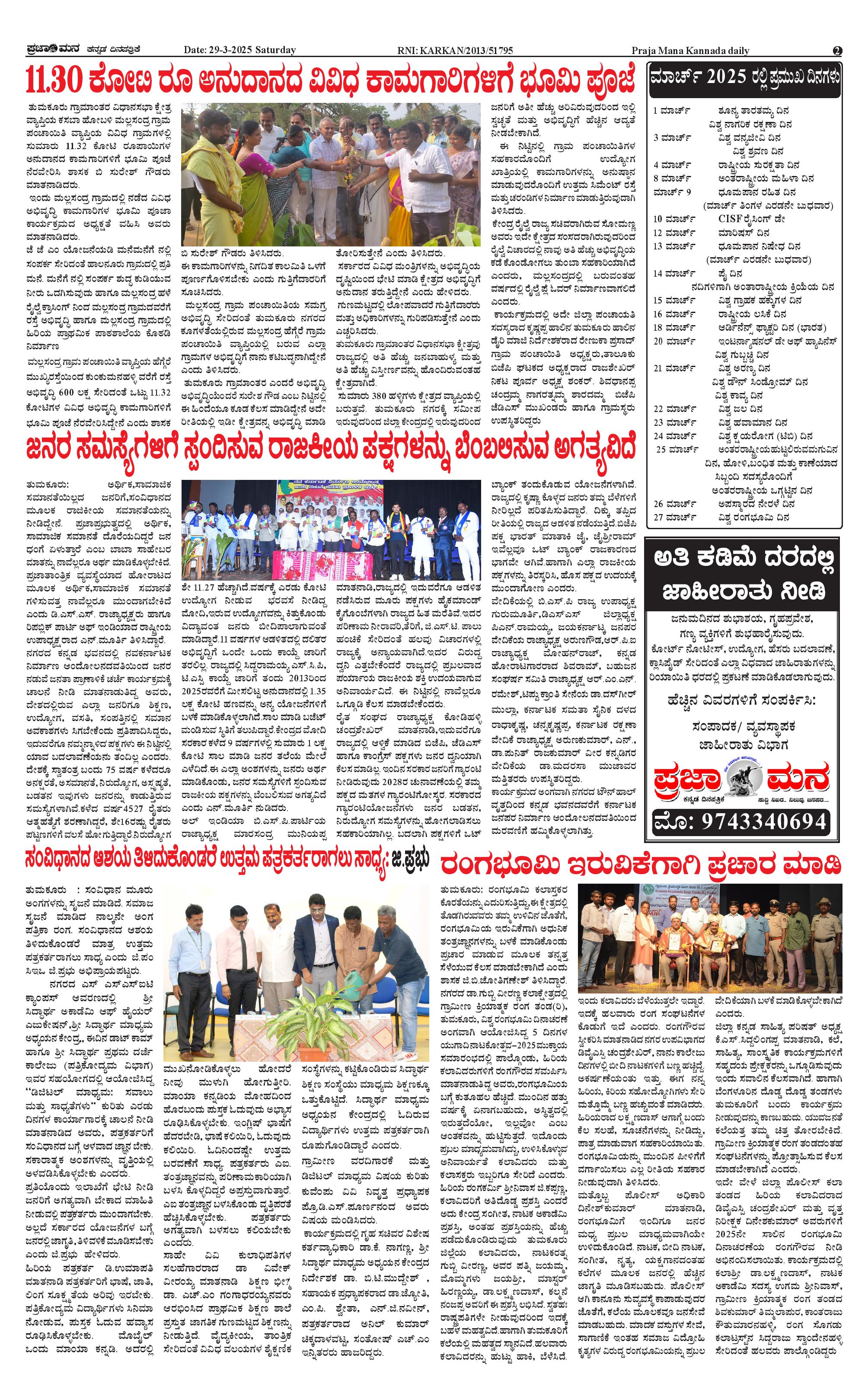 ಪ್ರಜಾಮನ 29 MARCH 2025 Page: 2 March 29, 2025 << First << 2 >> Last >> Page 1Page 2Page 3Page 4 × ಪ್ರಜಾಮನ 29 MARCH 2025 PRAJAMANA 11-page-001PRAJAMANA-page-002PRAJAMANA-page-003PRAJAMANA 11-page-004 << First << 2 >> Last >> PRAJAMANA 11-page-001PRAJAMANA-page-002PRAJAMANA-page-003PRAJAMANA 11-page-004 PRAJAMANA-page-002