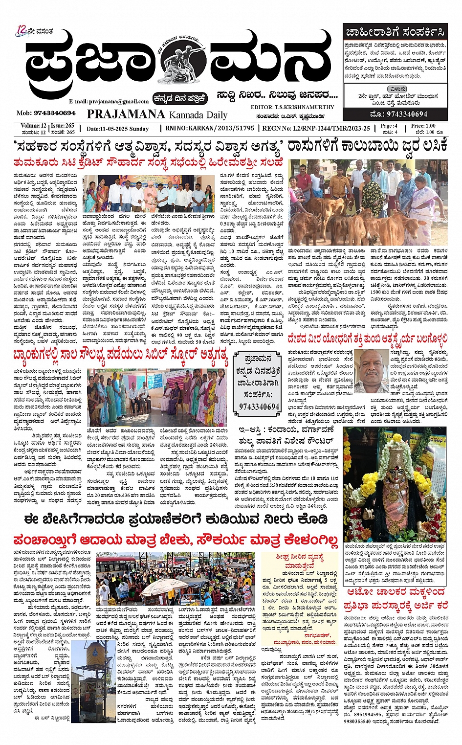 ಪ್ರಜಾಮನ 11 MAY 2025 May 11, 2025 << First << 1 >> Last >> Page 1Page 2Page 3Page 4 × ಪ್ರಜಾಮನ 11 MAY 2025 PRAJAMANA-page-001PRAJAMANA-page-002PRAJAMANA-page-003PRAJAMANA-page-004 << First << 1 >> Last >> PRAJAMANA-page-001PRAJAMANA-page-002PRAJAMANA-page-003PRAJAMANA-page-004 PRAJAMANA-page-001