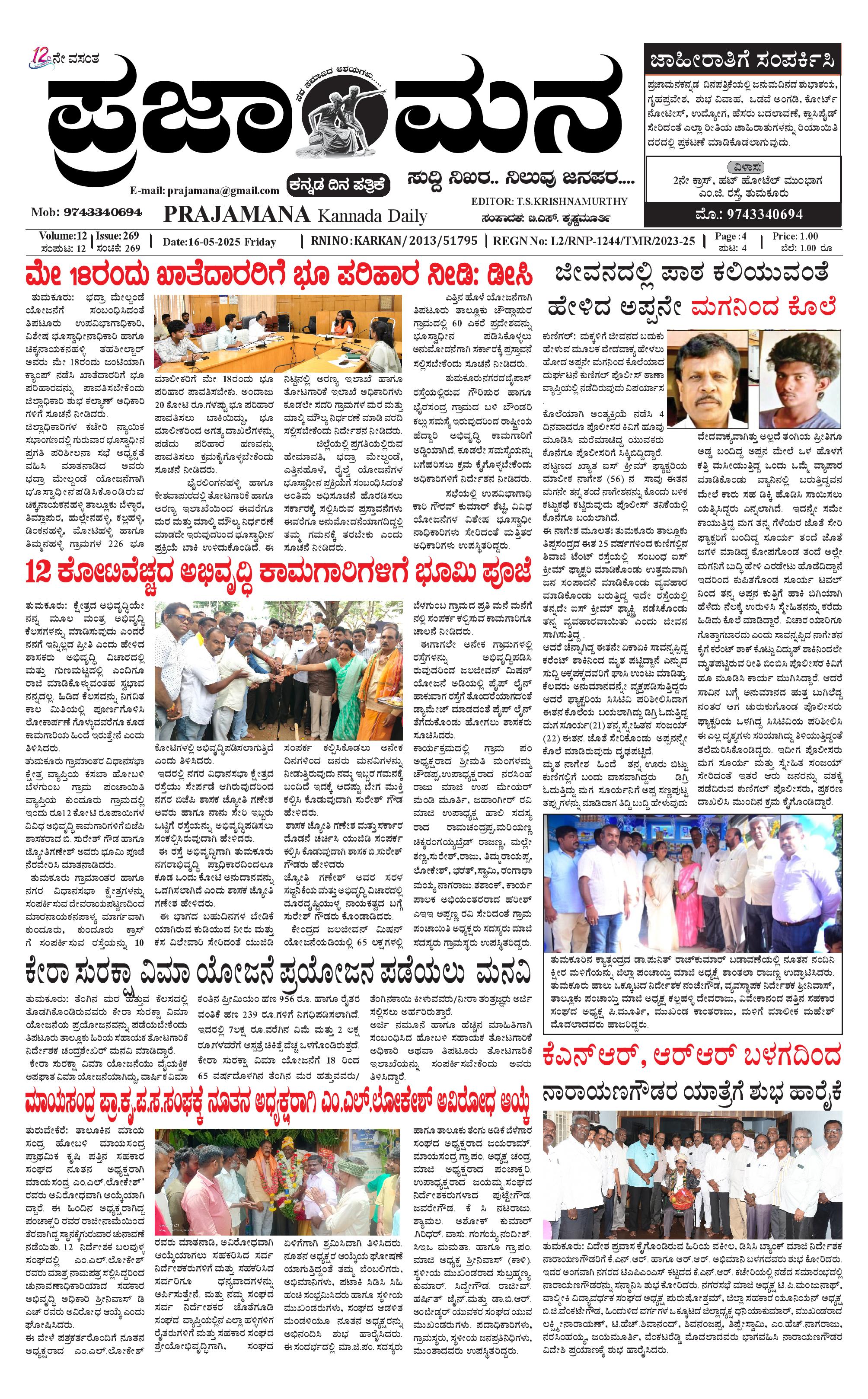 ಪ್ರಜಾಮನ 16 MAY 2025 May 16, 2025 << First << 1 >> Last >> Page 1Page 2Page 3Page 4 × ಪ್ರಜಾಮನ 16 MAY 2025 PRAJAMANA-page-001PRAJAMANA-page-002PRAJAMANA-page-003PRAJAMANA-page-004 << First << 1 >> Last >> PRAJAMANA-page-001PRAJAMANA-page-002PRAJAMANA-page-003PRAJAMANA-page-004 PRAJAMANA-page-001