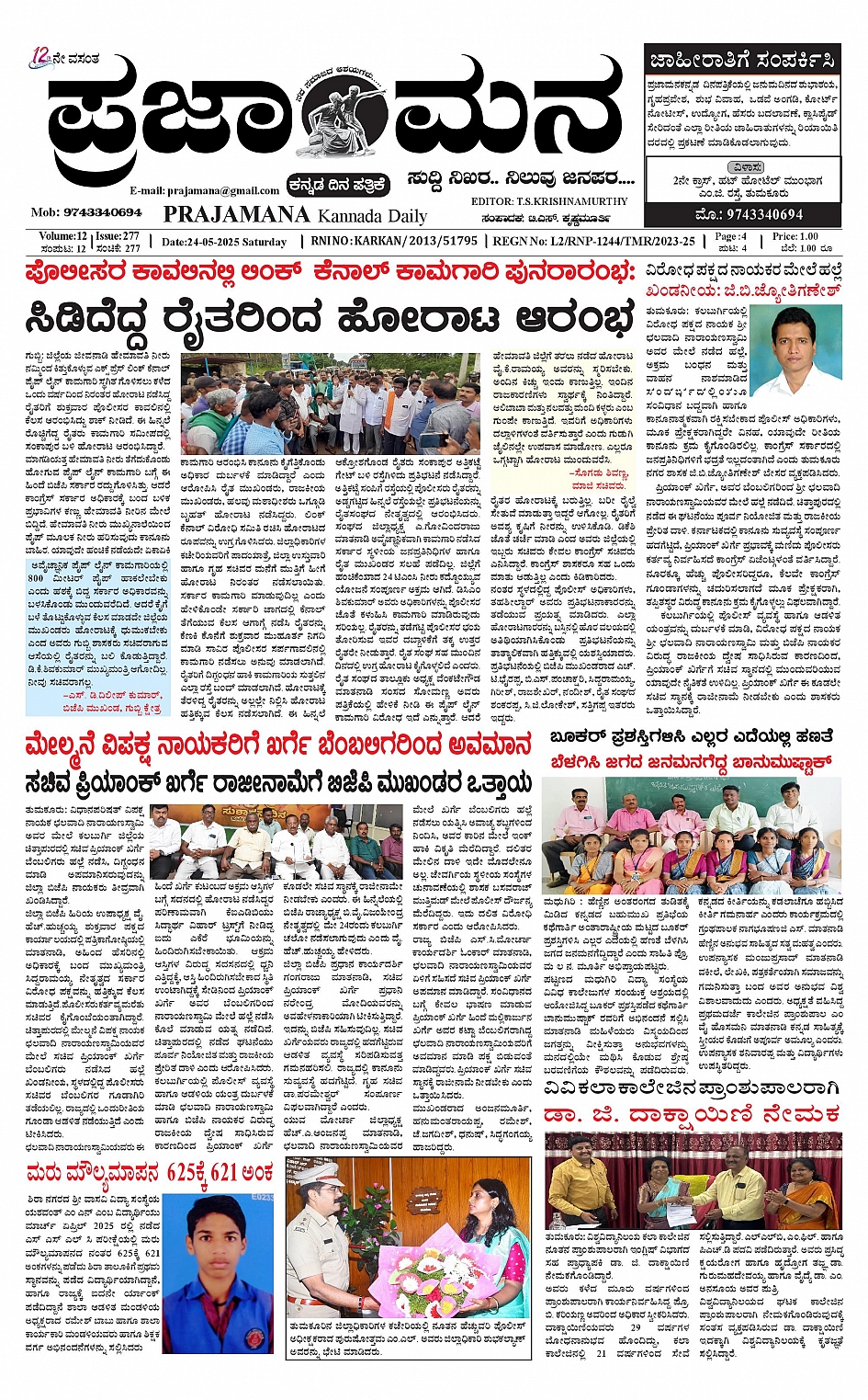 ಪ್ರಜಾಮನ 24 MAY 2025 May 24, 2025 << First << 1 >> Last >> Page 1Page 2Page 3Page 4 × ಪ್ರಜಾಮನ 24 MAY 2025 PRAJAMANA.11-page-001PRAJAMANA-page-002PRAJAMANA-page-003PRAJAMANA.11-page-004 << First << 1 >> Last >> PRAJAMANA.11-page-001PRAJAMANA-page-002PRAJAMANA-page-003PRAJAMANA.11-page-004 PRAJAMANA.11-page-001