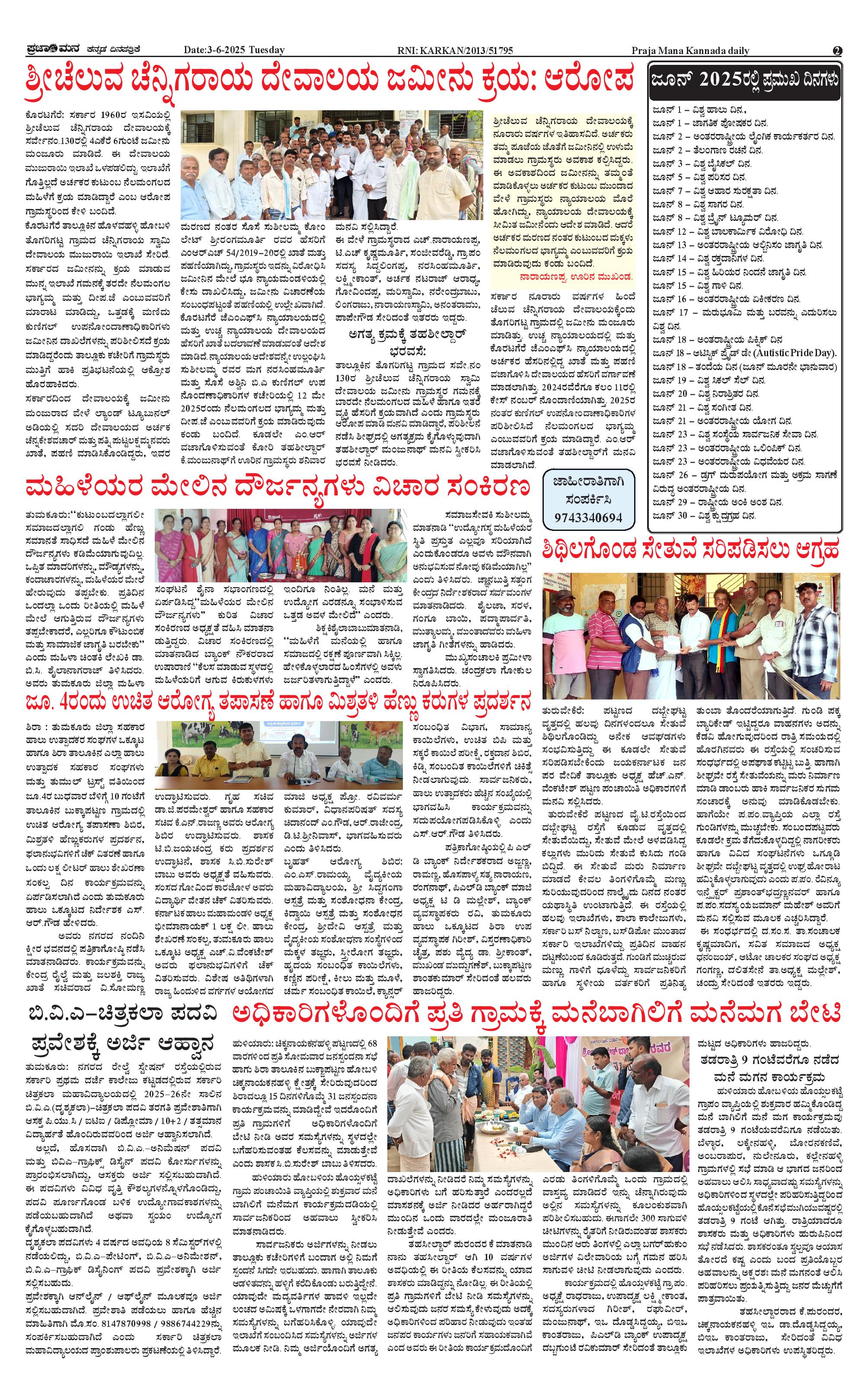 ಪ್ರಜಾಮನ 2 JUNE 2025 Page: 2 June 02, 2025 << First << 2 >> Last >> Page 1Page 2Page 3Page 4 × ಪ್ರಜಾಮನ 2 JUNE 2025 PRAJAMANA-page-001PRAJAMANA-page-002PRAJAMANA-page-003PRAJAMANA-page-004 << First << 2 >> Last >> PRAJAMANA-page-001PRAJAMANA-page-002PRAJAMANA-page-003PRAJAMANA-page-004 PRAJAMANA-page-002