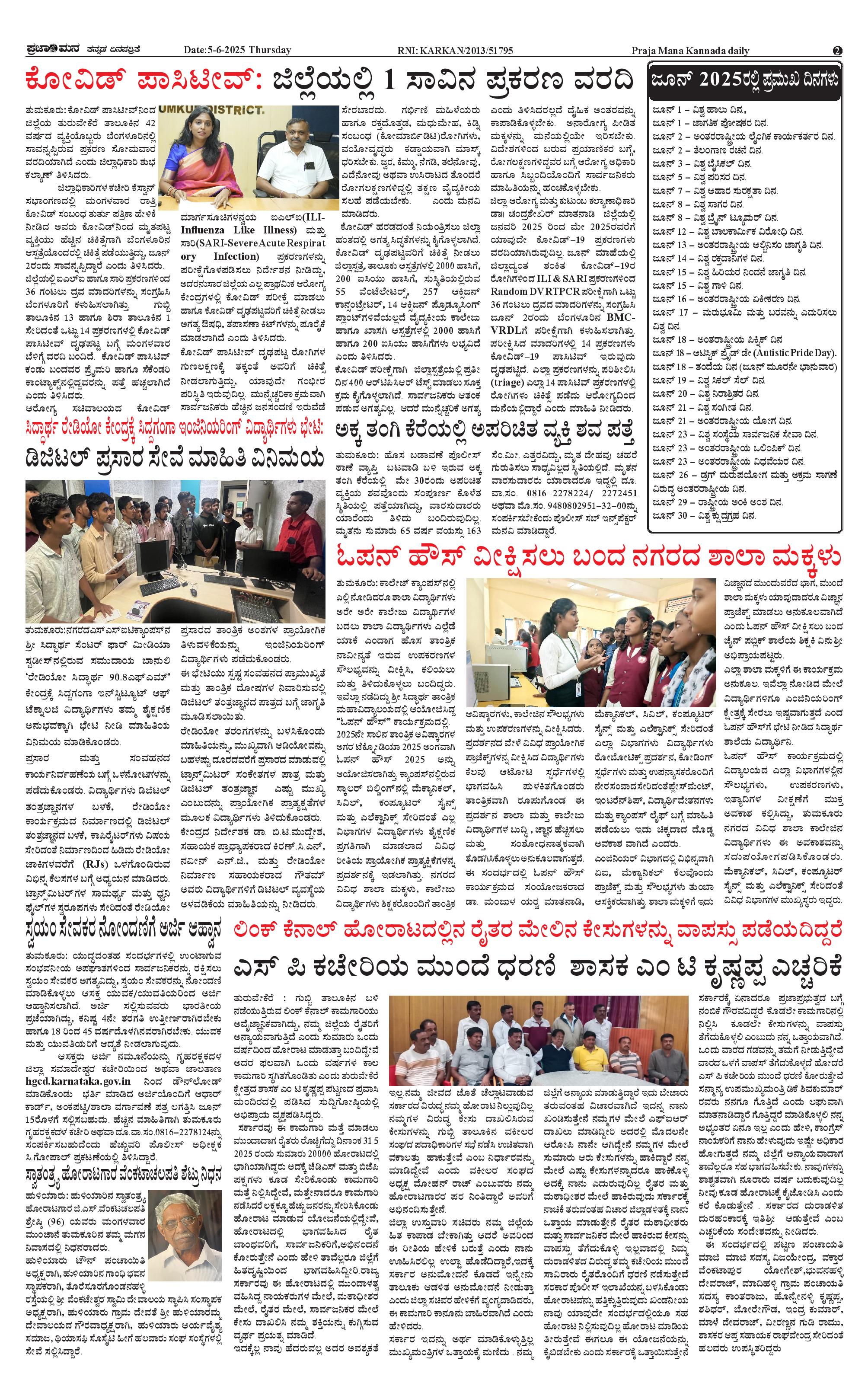 ಪ್ರಜಾಮನ 5 JUNE 2025 Page: 2 June 05, 2025 << First << 2 >> Last >> Page 1Page 2Page 3Page 4 × ಪ್ರಜಾಮನ 5 JUNE 2025 PRAJAMANA-page-001PRAJAMANA-page-002PRAJAMANA-page-003PRAJAMANA-page-004 << First << 2 >> Last >> PRAJAMANA-page-001PRAJAMANA-page-002PRAJAMANA-page-003PRAJAMANA-page-004 PRAJAMANA-page-002