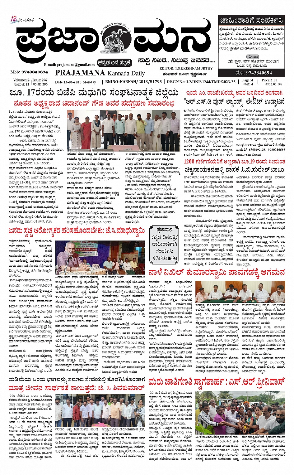 ಪ್ರಜಾಮನ 16 JUNE 2025 June 16, 2025 << First << 1 >> Last >> Page 1Page 2Page 3Page 4 × ಪ್ರಜಾಮನ 16 JUNE 2025 PRAJAMANA.11-page-001PRAJAMANA.11-page-002-1PRAJAMANA.11-page-003-1PRAJAMANA.11-page-004 << First << 1 >> Last >> PRAJAMANA.11-page-001PRAJAMANA.11-page-002-1PRAJAMANA.11-page-003-1PRAJAMANA.11-page-004 PRAJAMANA.11-page-001