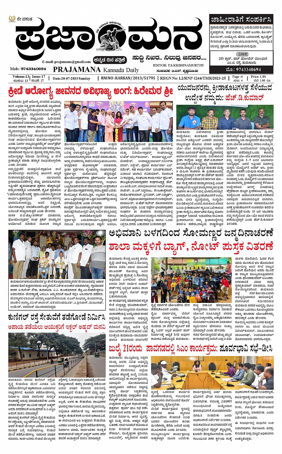 ಪ್ರಜಾಮನ 20 JULY 2025 July 20, 2025 << First << 1 >> Last >> Page 1Page 2Page 3Page 4 × ಪ್ರಜಾಮನ 20 JULY 2025 PRAJAMANA-page-001PRAJAMANA-page-002PRAJAMANA-page-003PRAJAMANA-page-004 << First << 1 >> Last >> PRAJAMANA-page-001PRAJAMANA-page-002PRAJAMANA-page-003PRAJAMANA-page-004 PRAJAMANA-page-001