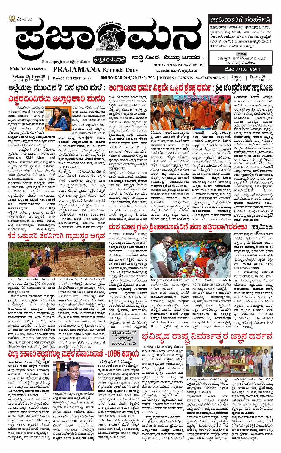 ಪ್ರಜಾಮನ 22 JULY 2025 July 22, 2025 << First << 1 >> Last >> Page 1Page 2Page 3Page 4 × ಪ್ರಜಾಮನ 22 JULY 2025 PRAJAMANA-page-001PRAJAMANA-page-002PRAJAMANA-page-003PRAJAMANA-page-004 << First << 1 >> Last >> PRAJAMANA-page-001PRAJAMANA-page-002PRAJAMANA-page-003PRAJAMANA-page-004 PRAJAMANA-page-001