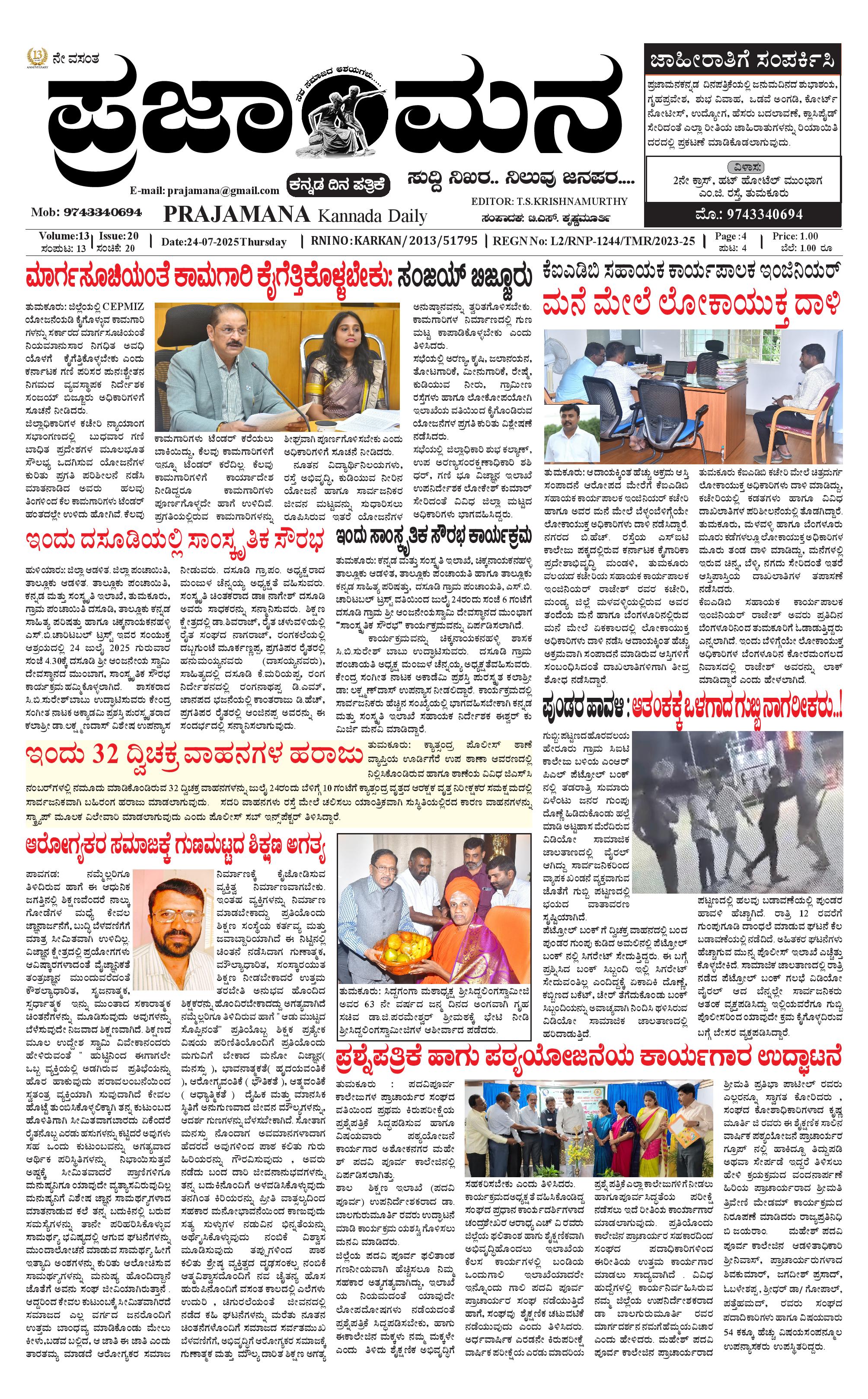 ಪ್ರಜಾಮನ 24 JULY 2025 July 24, 2025 << First << 1 >> Last >> Page 1Page 2Page 3Page 4 × ಪ್ರಜಾಮನ 24 JULY 2025 PRAJAMANA-page-001PRAJAMANA-page-002PRAJAMANA-page-003PRAJAMANA-page-004 << First << 1 >> Last >> PRAJAMANA-page-001PRAJAMANA-page-002PRAJAMANA-page-003PRAJAMANA-page-004 PRAJAMANA-page-001