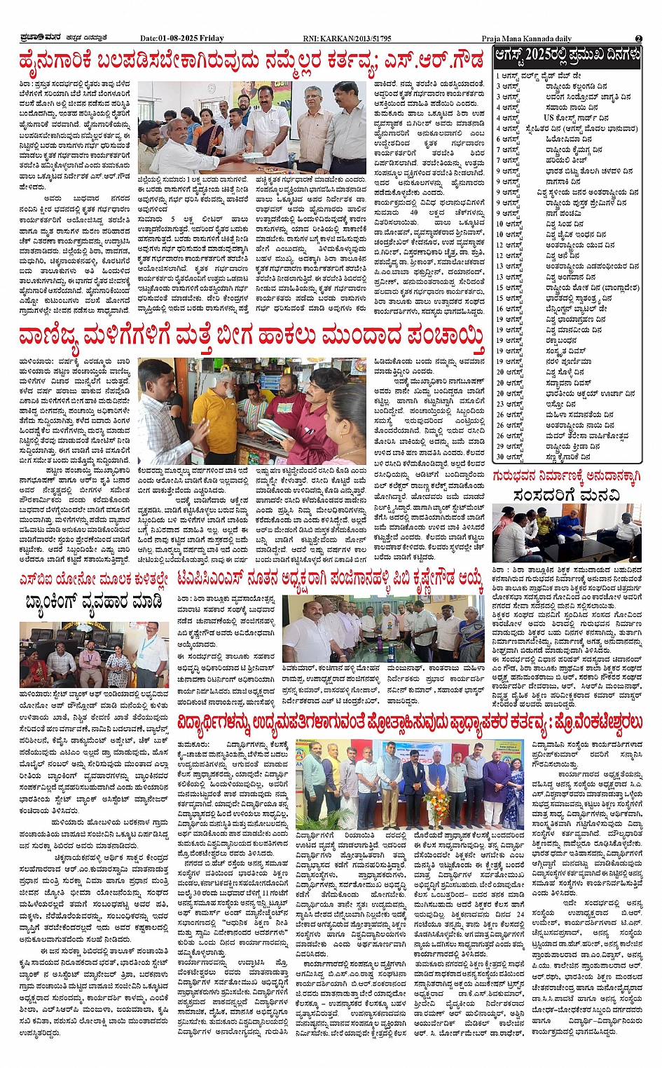ಪ್ರಜಾಮನ 1 AUGUST 2025 Page: 2 August 01, 2025 << First << 2 >> Last >> Page 1Page 2Page 3Page 4 × ಪ್ರಜಾಮನ 1 AUGUST 2025 PRAJAMANA-page-001PRAJAMANA-page-002PRAJAMANA-page-003PRAJAMANA-page-004 << First << 2 >> Last >> PRAJAMANA-page-001PRAJAMANA-page-002PRAJAMANA-page-003PRAJAMANA-page-004 PRAJAMANA-page-002