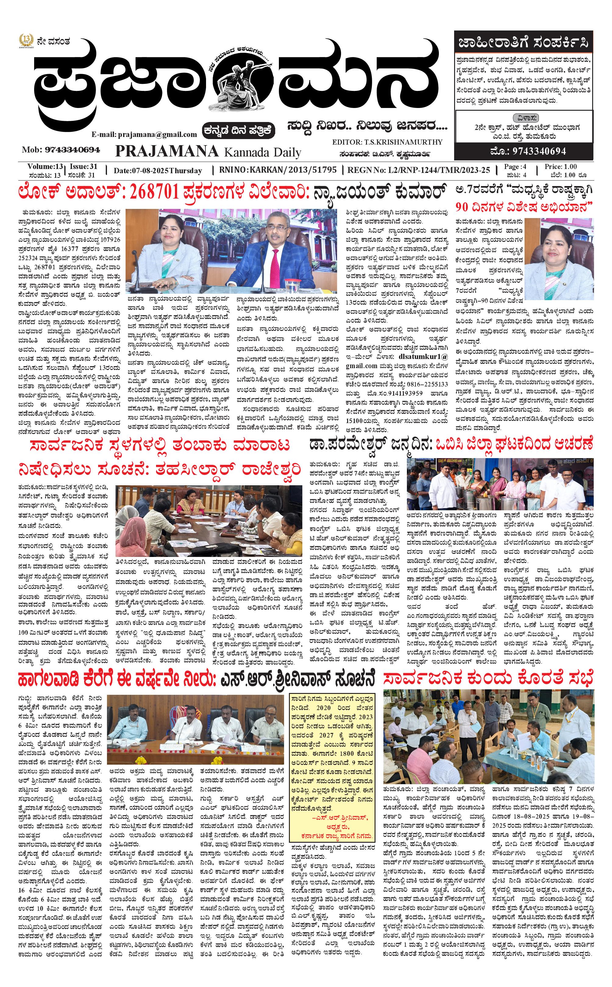 ಪ್ರಜಾಮನ 7 AUGUST 2025 August 07, 2025 << First << 1 >> Last >> Page 1Page 2Page 3Page 4 × ಪ್ರಜಾಮನ 7 AUGUST 2025 PRAJAMANA-page-001PRAJAMANA-page-002PRAJAMANA-page-003-1PRAJAMANA-page-004 << First << 1 >> Last >> PRAJAMANA-page-001PRAJAMANA-page-002PRAJAMANA-page-003-1PRAJAMANA-page-004 PRAJAMANA-page-001