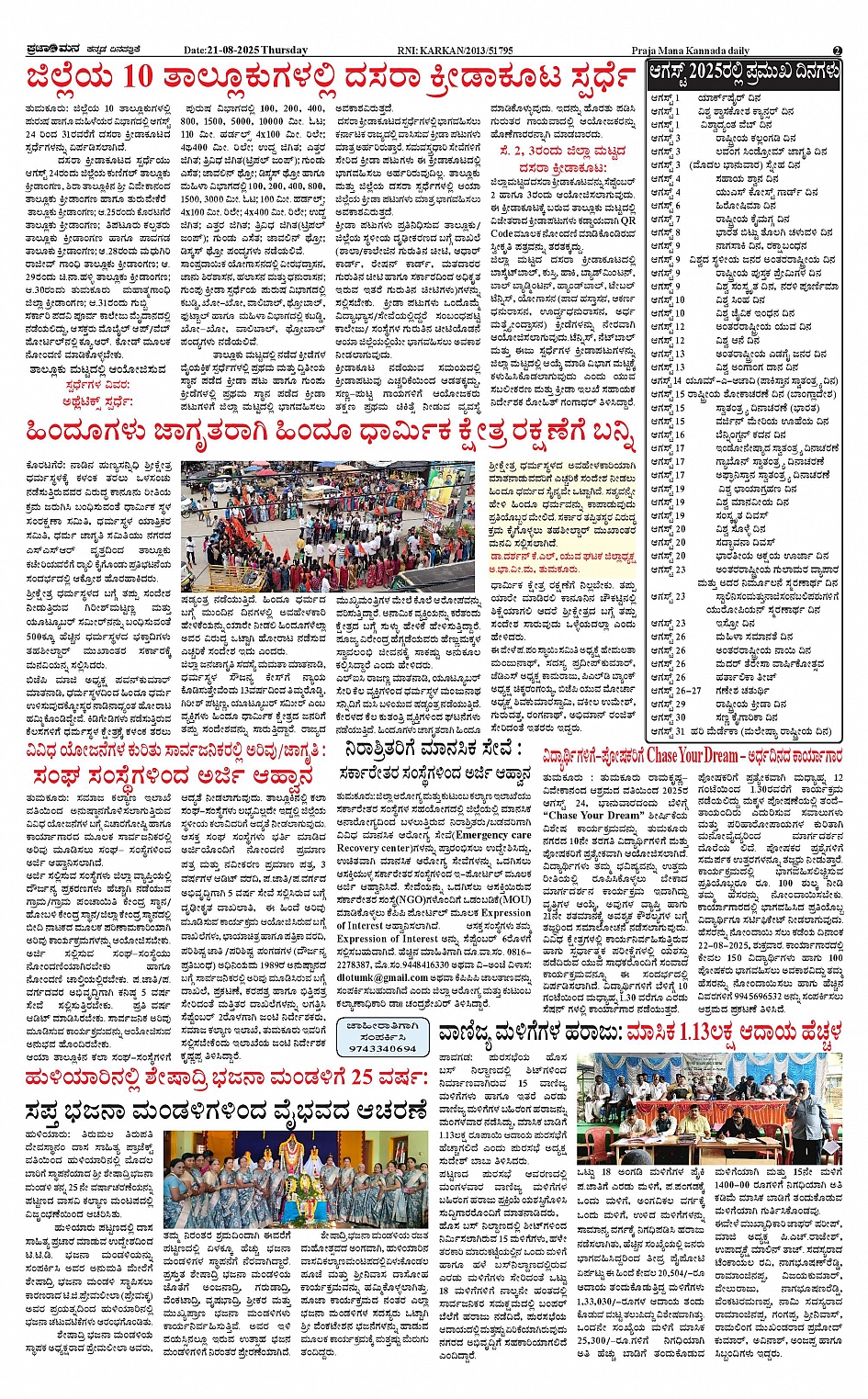 ಪ್ರಜಾಮನ 21 AUGUST 2025 Page: 2 August 21, 2025 << First << 2 >> Last >> Page 1Page 2Page 3Page 4 × ಪ್ರಜಾಮನ 21 AUGUST 2025 PRAJAMANA-page-001PRAJAMANA-page-002PRAJAMANA-page-003PRAJAMANA-page-004 << First << 2 >> Last >> PRAJAMANA-page-001PRAJAMANA-page-002PRAJAMANA-page-003PRAJAMANA-page-004 PRAJAMANA-page-002