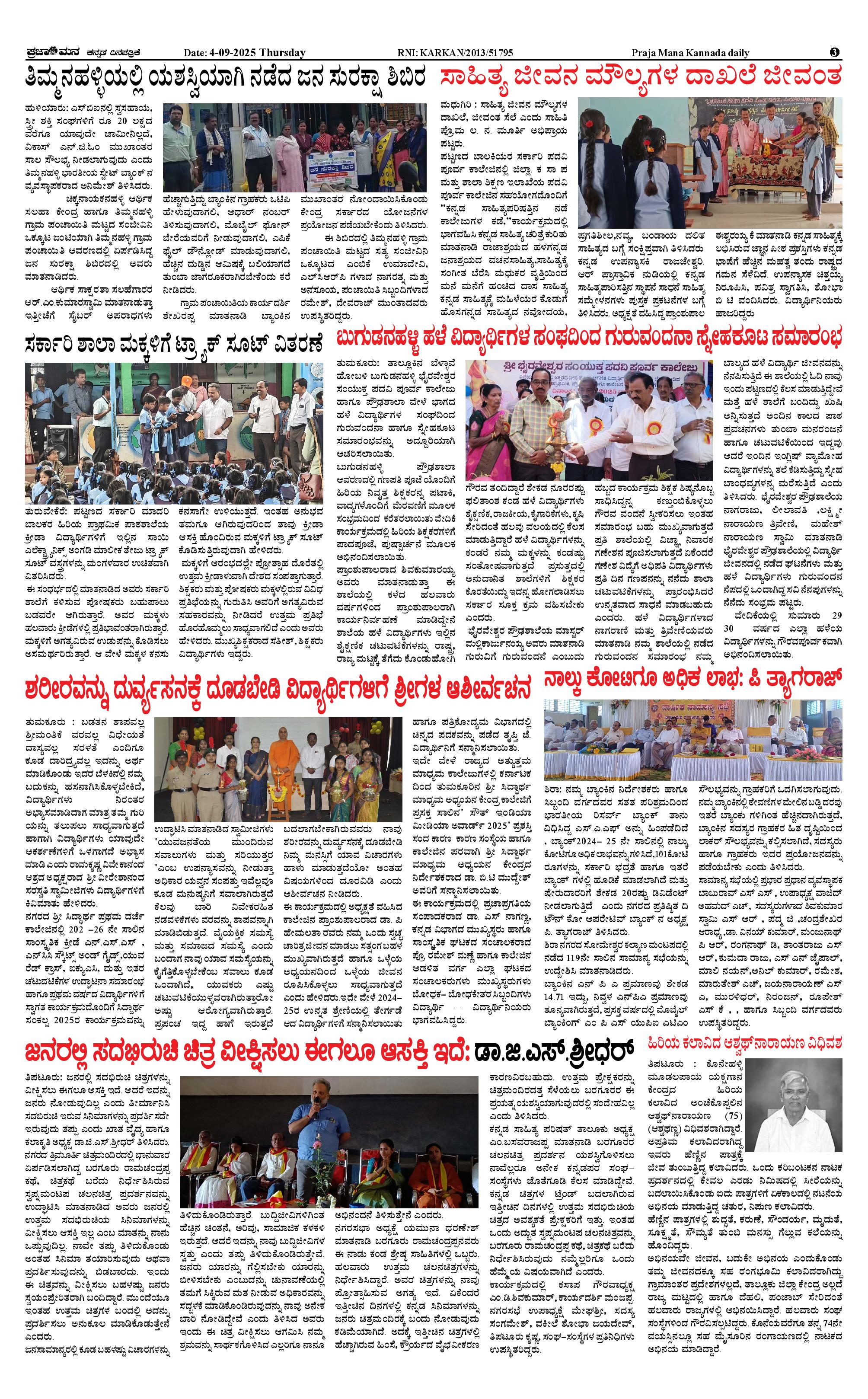 ಪ್ರಜಾಮನ 4 SEPTEMBER 2025 Page: 3 September 04, 2025 << First << 3 >> Last >> Page 1Page 2Page 3Page 4 × ಪ್ರಜಾಮನ 4 SEPTEMBER 2025 PRAJAMANA-page-001PRAJAMANA-page-002PRAJAMANA-page-003PRAJAMANA-page-004 << First << 3 >> Last >> PRAJAMANA-page-001PRAJAMANA-page-002PRAJAMANA-page-003PRAJAMANA-page-004 PRAJAMANA-page-003