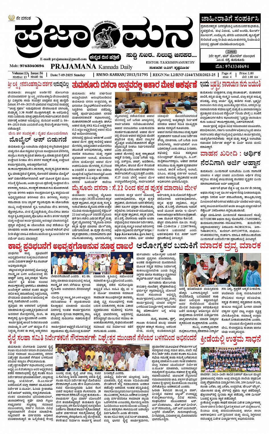 ಪ್ರಜಾಮನ 7 SEPTEMBER 2025 September 07, 2025 << First << 1 >> Last >> Page 1Page 2Page 3Page 4 × ಪ್ರಜಾಮನ 7 SEPTEMBER 2025 PRAJAMANA-page-001PRAJAMANA-page-002PRAJAMANA-page-003PRAJAMANA-page-004 << First << 1 >> Last >> PRAJAMANA-page-001PRAJAMANA-page-002PRAJAMANA-page-003PRAJAMANA-page-004 PRAJAMANA-page-001