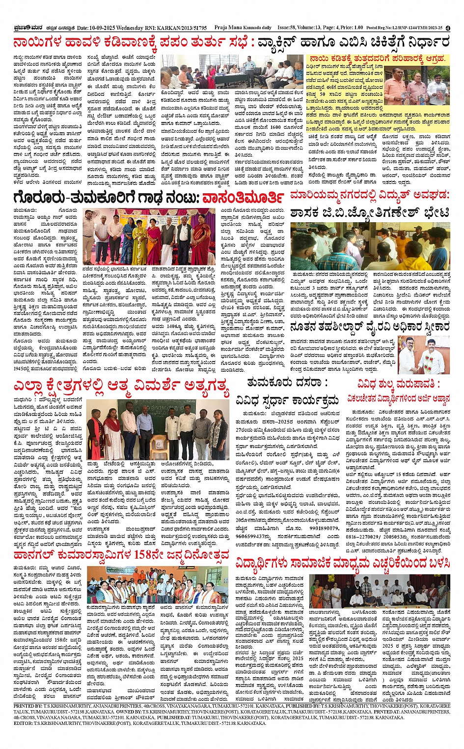 ಪ್ರಜಾಮನ 10 SEPTEMBER 2025 Page: 4 September 10, 2025 << First << 4 >> Last >> Page 1Page 2Page 3Page 4 × ಪ್ರಜಾಮನ 10 SEPTEMBER 2025 PRAJAMANA-page-001PRAJAMANA-page-002PRAJAMANA-page-003PRAJAMANA-page-004 << First << 4 >> Last >> PRAJAMANA-page-001PRAJAMANA-page-002PRAJAMANA-page-003PRAJAMANA-page-004 PRAJAMANA-page-004