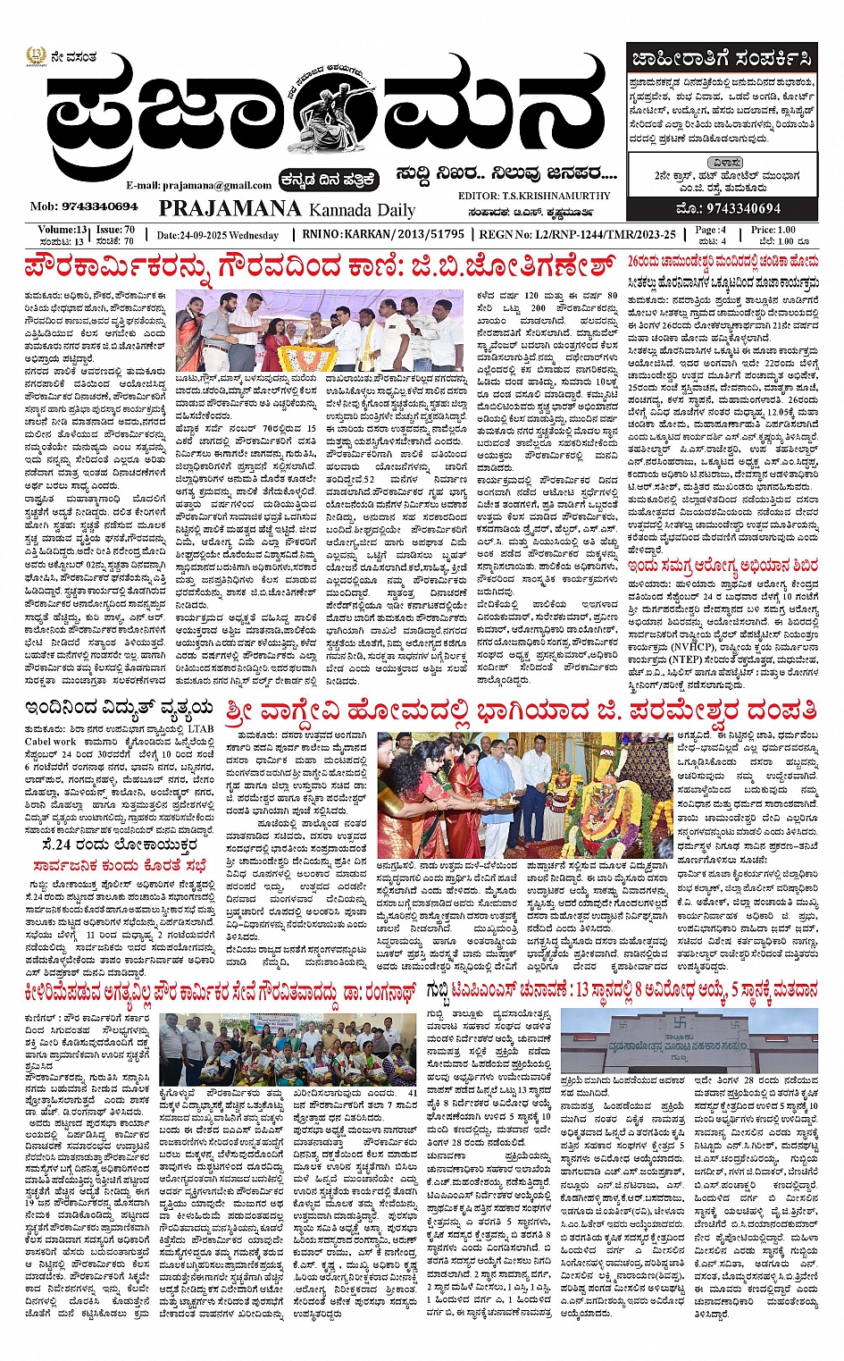 ಪ್ರಜಾಮನ 24 SEPTEMBER 2025 September 24, 2025 << First << 1 >> Last >> Page 1Page 2Page 3Page 4 × ಪ್ರಜಾಮನ 24 SEPTEMBER 2025 PRAJAMANA-page-001PRAJAMANA-page-002PRAJAMANA-page-003PRAJAMANA-page-004 << First << 1 >> Last >> PRAJAMANA-page-001PRAJAMANA-page-002PRAJAMANA-page-003PRAJAMANA-page-004 PRAJAMANA-page-001