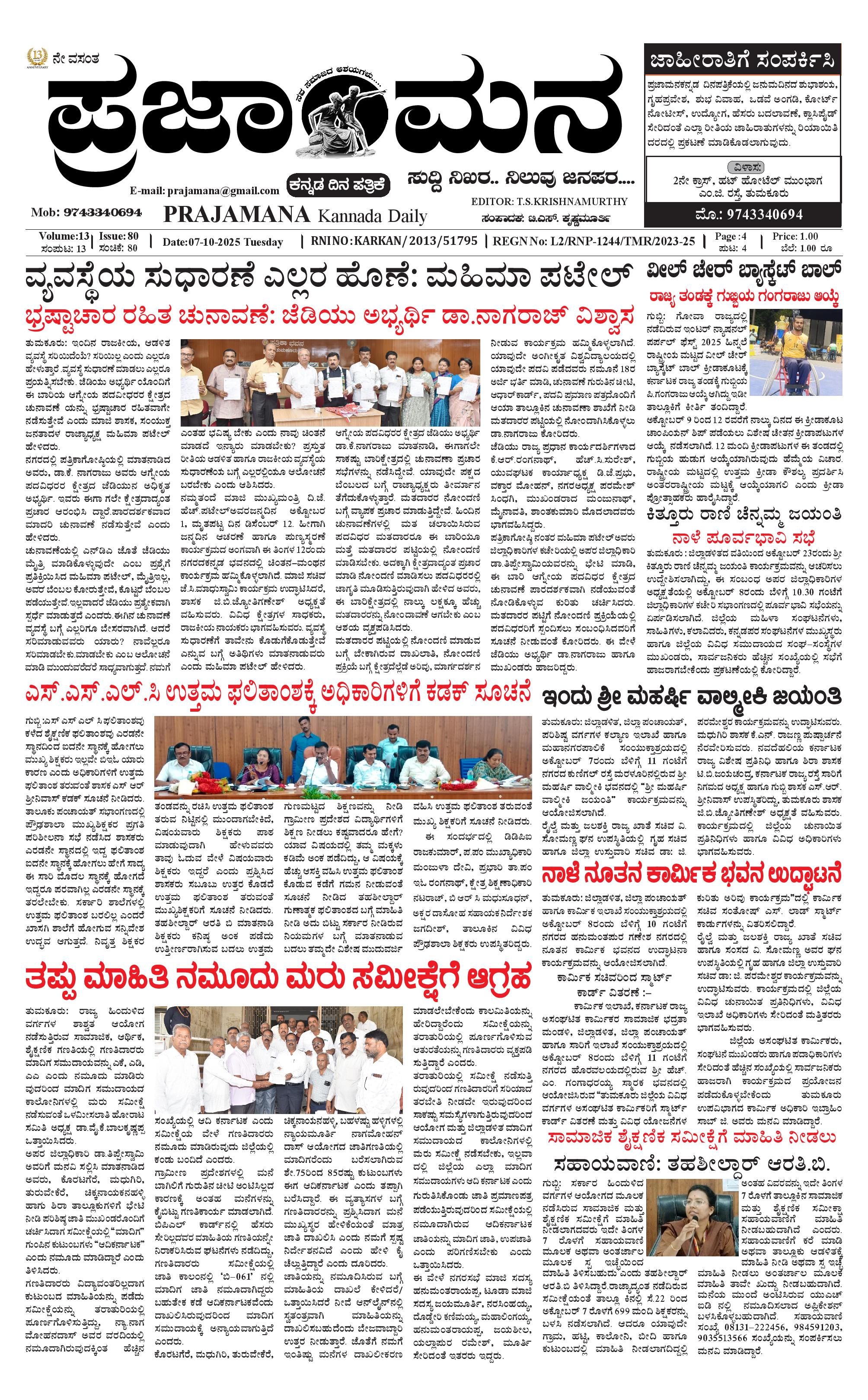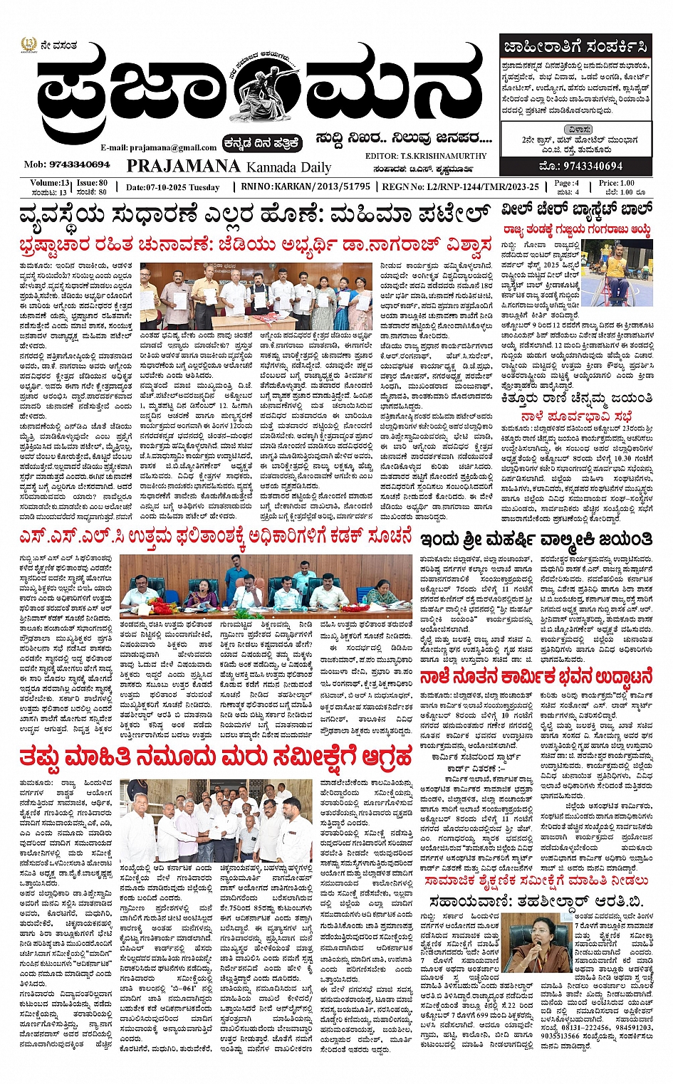 ಪ್ರಜಾಮನ 7 OCTOBER 2025 October 07, 2025 << First << 1 >> Last >> Page 1Page 2Page 3Page 4 × ಪ್ರಜಾಮನ 7 OCTOBER 2025 PRAJAMANA-page-001PRAJAMANA-page-002PRAJAMANA-page-003PRAJAMANA-page-004 << First << 1 >> Last >> PRAJAMANA-page-001PRAJAMANA-page-002PRAJAMANA-page-003PRAJAMANA-page-004 PRAJAMANA-page-001