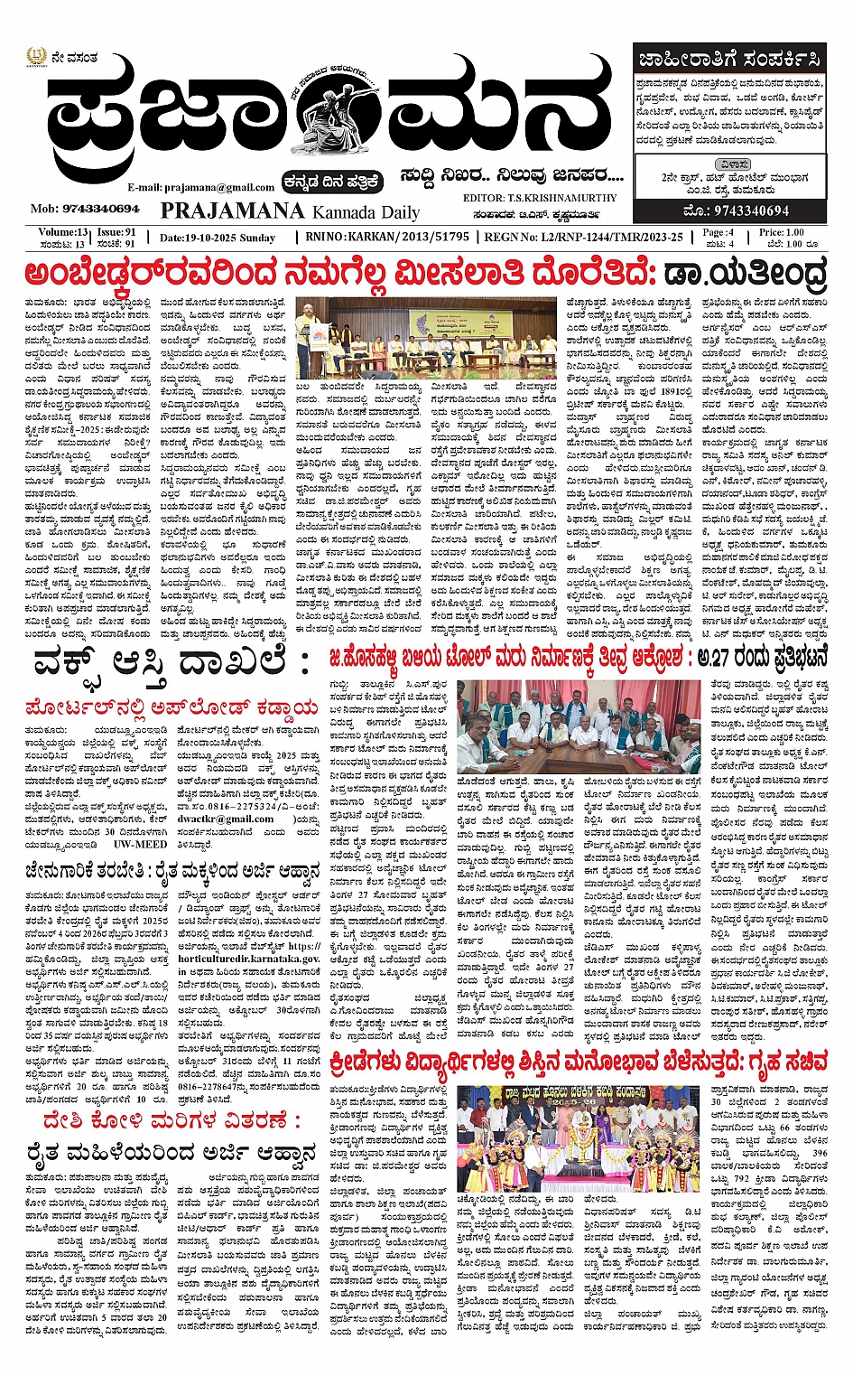 ಪ್ರಜಾಮನ 19 OCTOBER 2025 October 19, 2025 << First << 1 >> Last >> Page 1Page 2Page 3Page 4 × ಪ್ರಜಾಮನ 19 OCTOBER 2025 PRAJAMANA-page-001PRAJAMANA-page-002PRAJAMANA-page-003PRAJAMANA-page-004 << First << 1 >> Last >> PRAJAMANA-page-001PRAJAMANA-page-002PRAJAMANA-page-003PRAJAMANA-page-004 PRAJAMANA-page-001