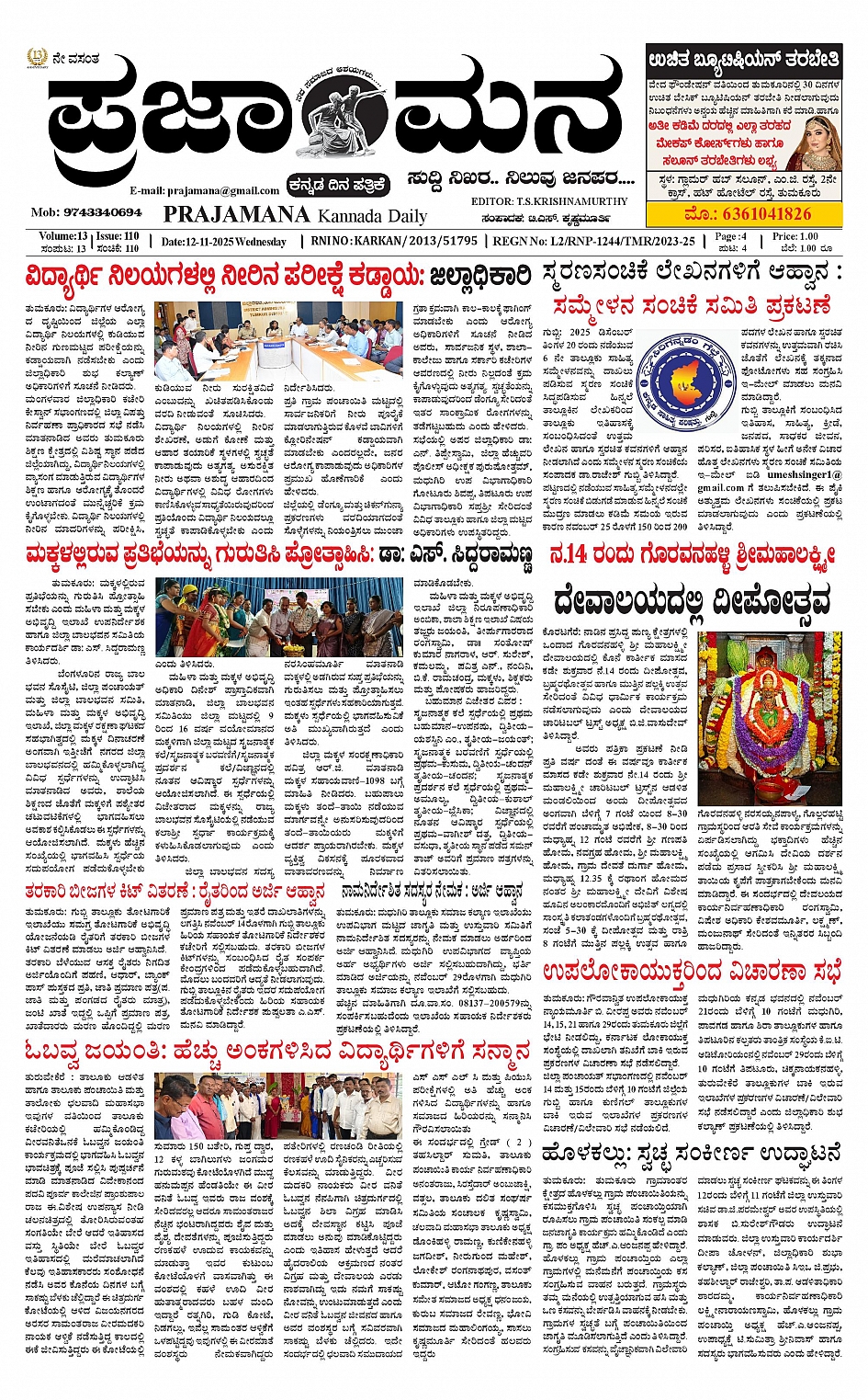 ಪ್ರಜಾಮನ 12 NOVEMBER 2025 November 12, 2025 << First << 1 >> Last >> Page 1Page 2Page 3Page 4 × ಪ್ರಜಾಮನ 12 NOVEMBER 2025 PRAJAMANA-page-001PRAJAMANA-page-002PRAJAMANA-page-003PRAJAMANA-page-004 << First << 1 >> Last >> PRAJAMANA-page-001PRAJAMANA-page-002PRAJAMANA-page-003PRAJAMANA-page-004 PRAJAMANA-page-001