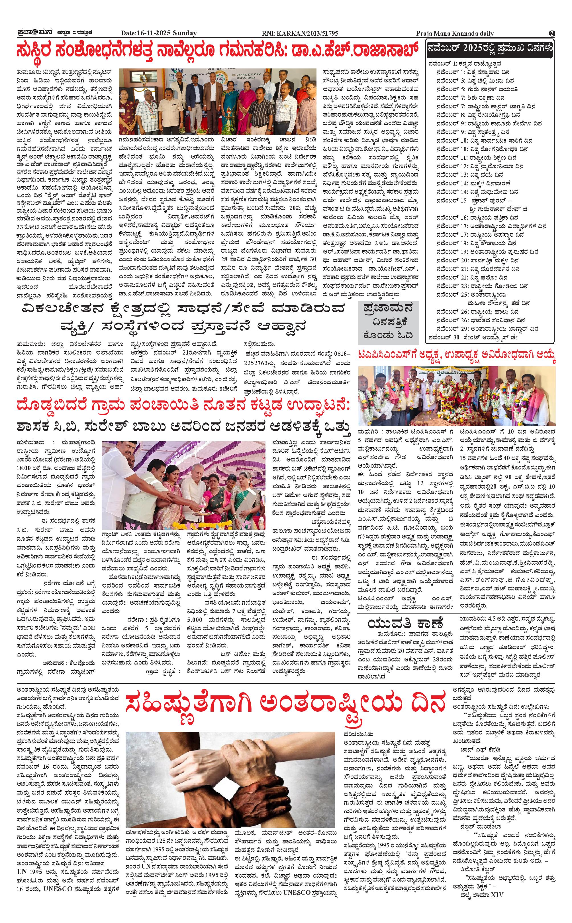 ಪ್ರಜಾಮನ 16 NOVEMBER 2025 Page: 2 November 16, 2025 << First << 2 >> Last >> Page 1Page 2Page 3Page 4 × ಪ್ರಜಾಮನ 16 NOVEMBER 2025 PRAJAMANA-page-001PRAJAMANA-page-002PRAJAMANA-page-003PRAJAMANA-page-004 << First << 2 >> Last >> PRAJAMANA-page-001PRAJAMANA-page-002PRAJAMANA-page-003PRAJAMANA-page-004 PRAJAMANA-page-002