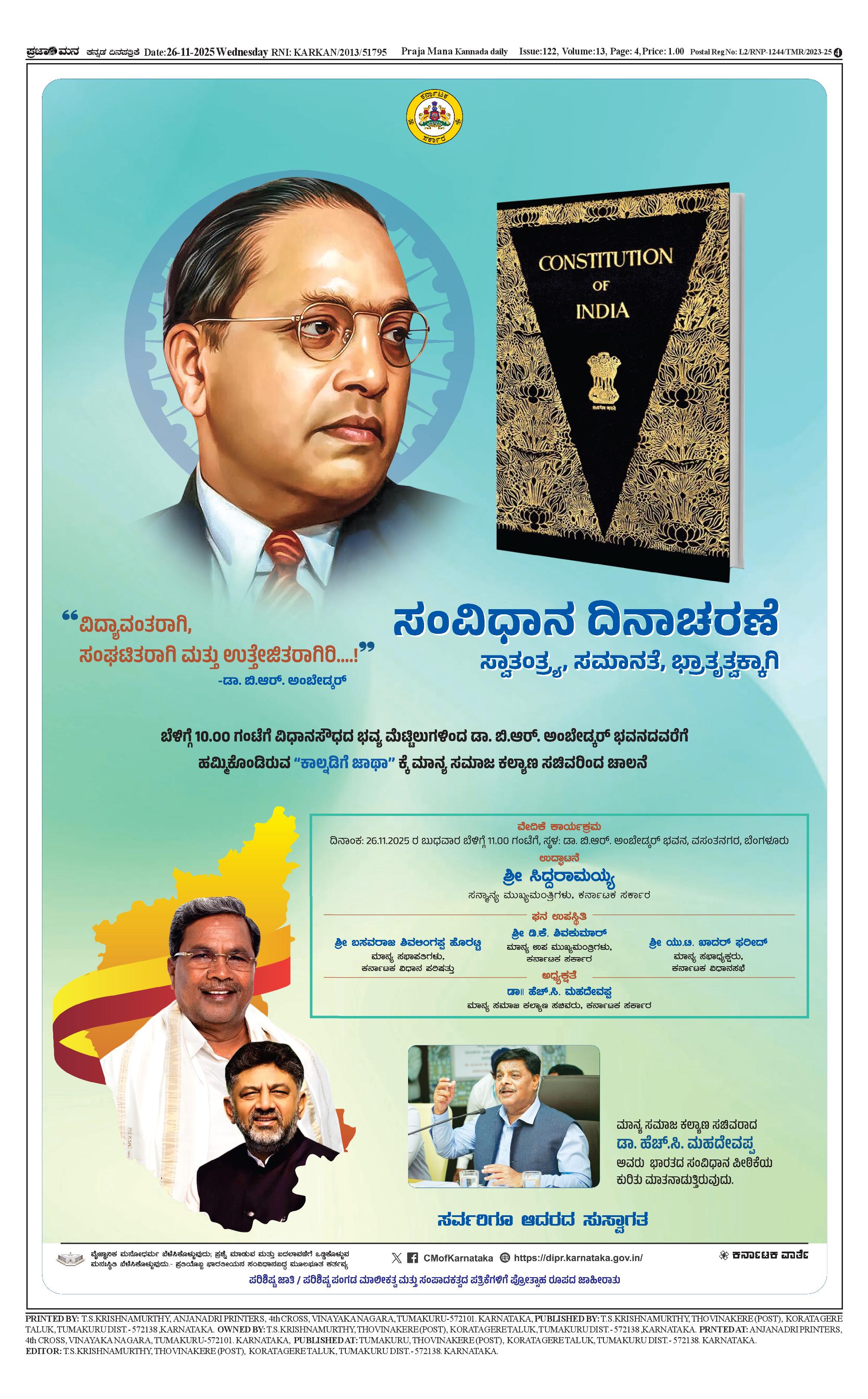 ಪ್ರಜಾಮನ 26 NOVEMBER 2025 Page: 4 November 26, 2025 << First << 4 >> Last >> Page 1Page 2Page 3Page 4 × ಪ್ರಜಾಮನ 26 NOVEMBER 2025 PRAJAMANA-page-001PRAJAMANA-page-002PRAJAMANA-page-003PRAJAMANA-page-004 << First << 4 >> Last >> PRAJAMANA-page-001PRAJAMANA-page-002PRAJAMANA-page-003PRAJAMANA-page-004 PRAJAMANA-page-004
