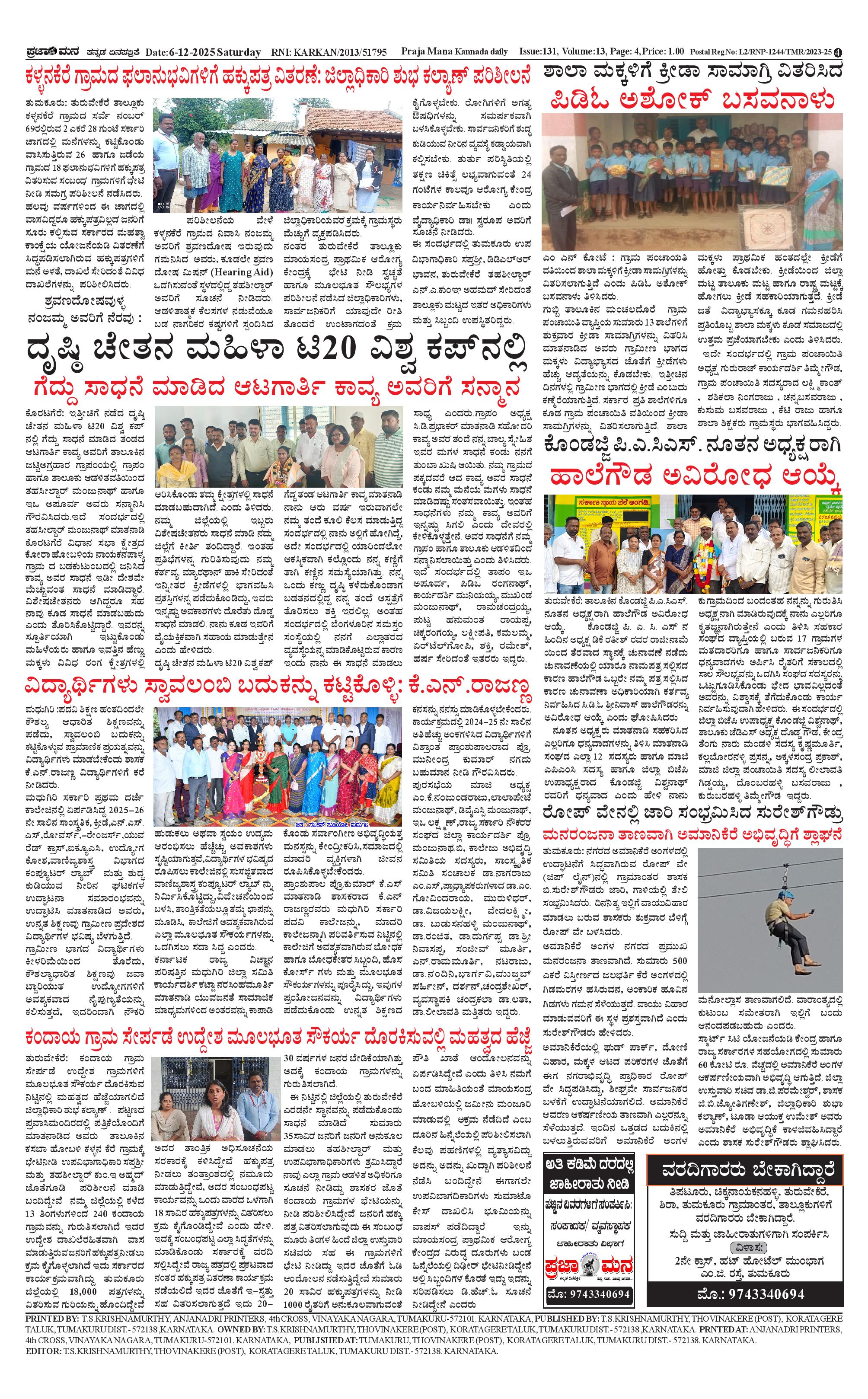 ಪ್ರಜಾಮನ 06 DECEMBER 2025 Page: 4 December 06, 2025 << First << 4 >> Last >> Page 1Page 2Page 3Page 4 × ಪ್ರಜಾಮನ 06 DECEMBER 2025 PRAJAMANA-page-001PRAJAMANA-page-002PRAJAMANA-page-003PRAJAMANA-page-004 << First << 4 >> Last >> PRAJAMANA-page-001PRAJAMANA-page-002PRAJAMANA-page-003PRAJAMANA-page-004 PRAJAMANA-page-004