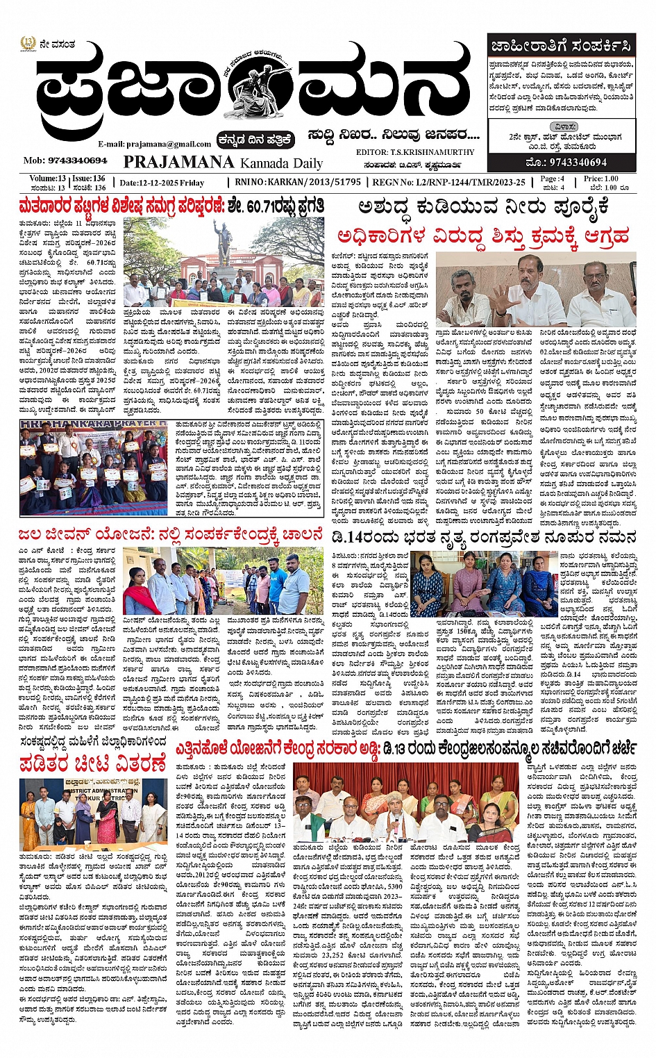 ಪ್ರಜಾಮನ 12 DECEMBER 2025 December 12, 2025 << First << 1 >> Last >> Page 1Page 2Page 3Page 4 × ಪ್ರಜಾಮನ 12 DECEMBER 2025 PRAJAMANA 7-page-001PRAJAMANA 7-page-002PRAJAMANA 7-page-003PRAJAMANA 7-page-004 << First << 1 >> Last >> PRAJAMANA 7-page-001PRAJAMANA 7-page-002PRAJAMANA 7-page-003PRAJAMANA 7-page-004 PRAJAMANA 7-page-001