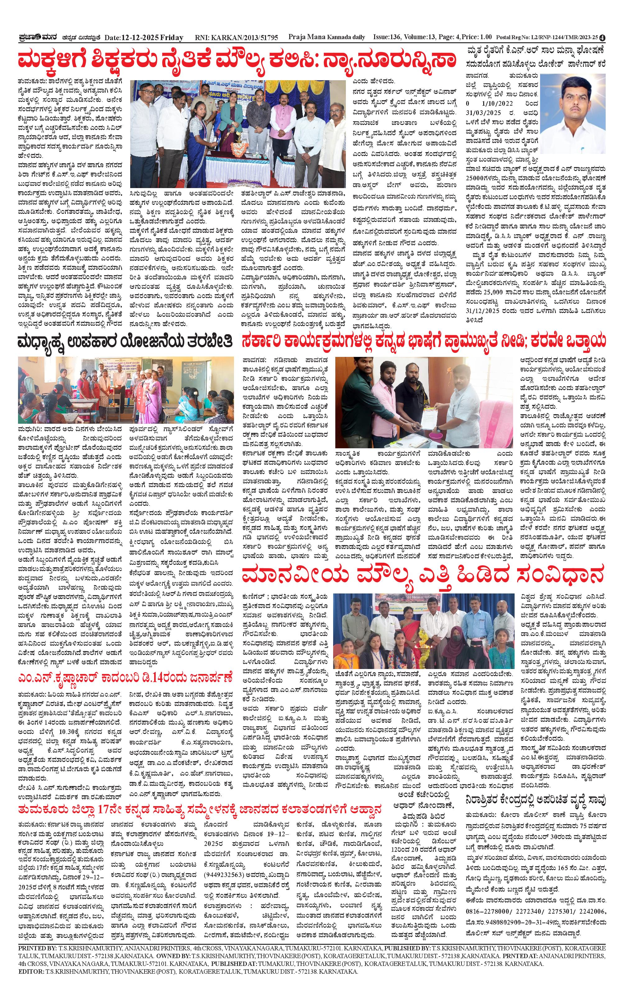 ಪ್ರಜಾಮನ 12 DECEMBER 2025 Page: 4 December 12, 2025 << First << 4 >> Last >> Page 1Page 2Page 3Page 4 × ಪ್ರಜಾಮನ 12 DECEMBER 2025 PRAJAMANA 7-page-001PRAJAMANA 7-page-002PRAJAMANA 7-page-003PRAJAMANA 7-page-004 << First << 4 >> Last >> PRAJAMANA 7-page-001PRAJAMANA 7-page-002PRAJAMANA 7-page-003PRAJAMANA 7-page-004 PRAJAMANA 7-page-004