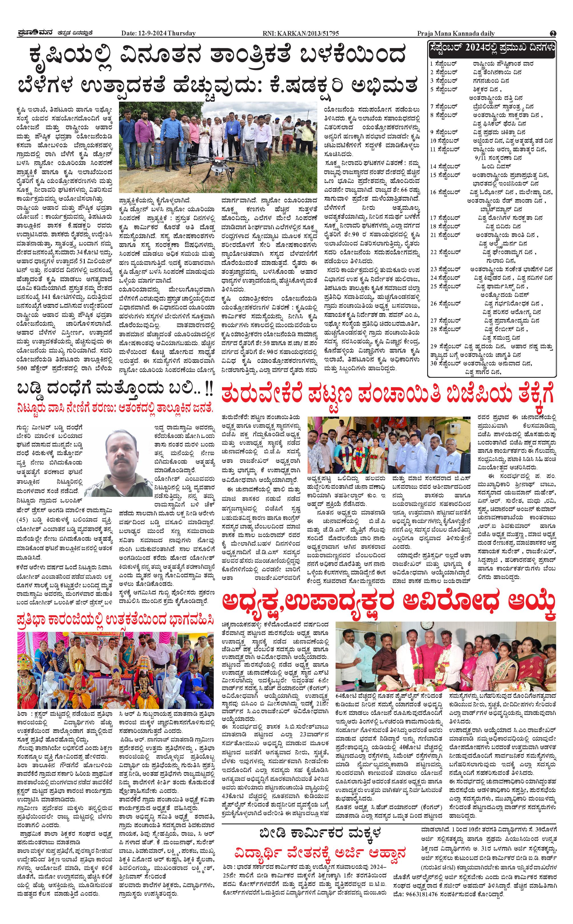ಪ್ರಜಾಮನ 12 SEPTEMBER 2024 Page: 2 September 12, 2024 << First << 2 >> Last >> Page 1Page 2Page 3Page 4 × ಪ್ರಜಾಮನ 12 SEPTEMBER 2024 PRAJAMANA-page-001PRAJAMANA-page-002PRAJAMANA-page-003PRAJAMANA-page-004 << First << 2 >> Last >> PRAJAMANA-page-001PRAJAMANA-page-002PRAJAMANA-page-003PRAJAMANA-page-004 PRAJAMANA-page-002