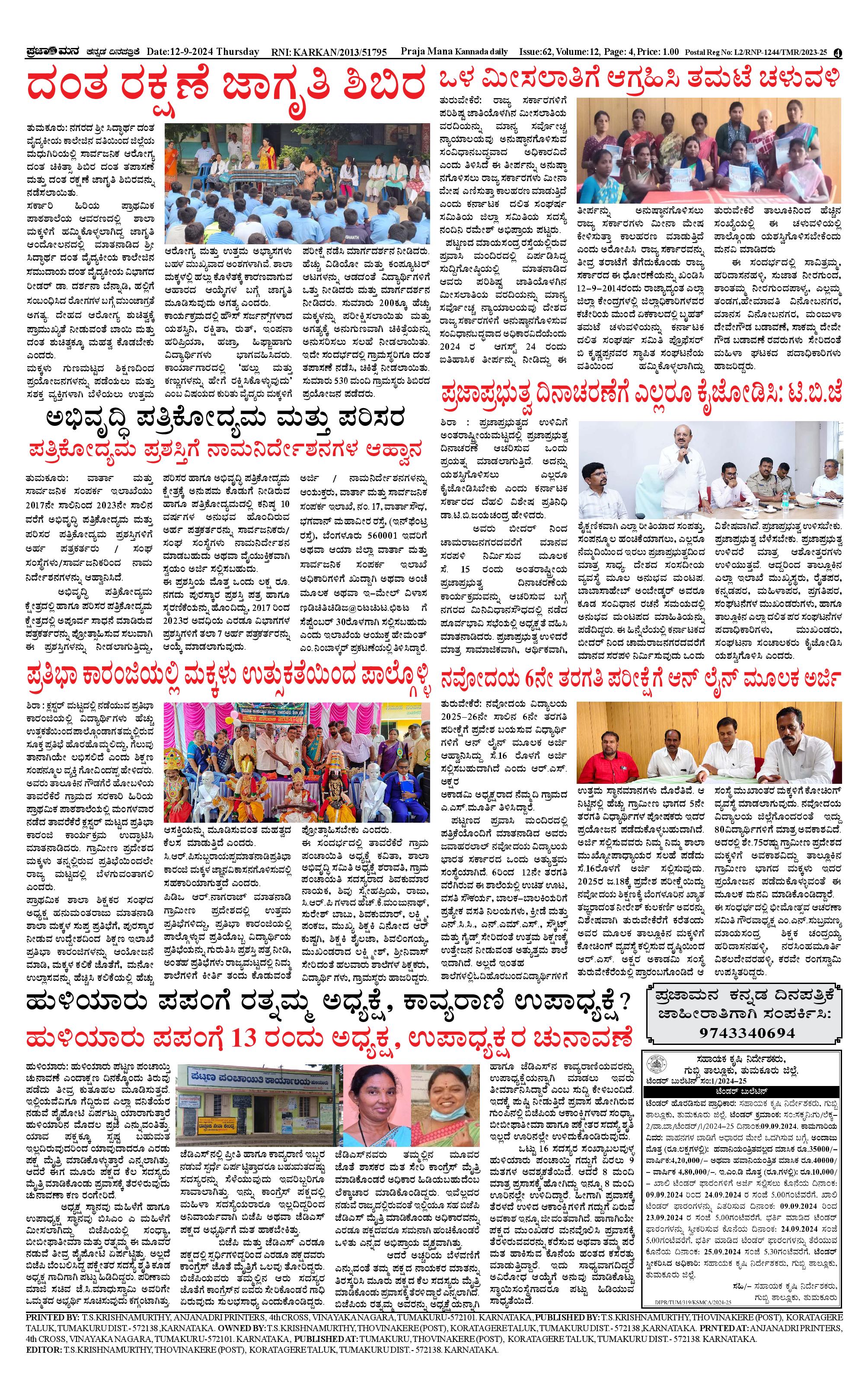 ಪ್ರಜಾಮನ 12 SEPTEMBER 2024 Page: 4 September 12, 2024 << First << 4 >> Last >> Page 1Page 2Page 3Page 4 × ಪ್ರಜಾಮನ 12 SEPTEMBER 2024 PRAJAMANA-page-001PRAJAMANA-page-002PRAJAMANA-page-003PRAJAMANA-page-004 << First << 4 >> Last >> PRAJAMANA-page-001PRAJAMANA-page-002PRAJAMANA-page-003PRAJAMANA-page-004 PRAJAMANA-page-004