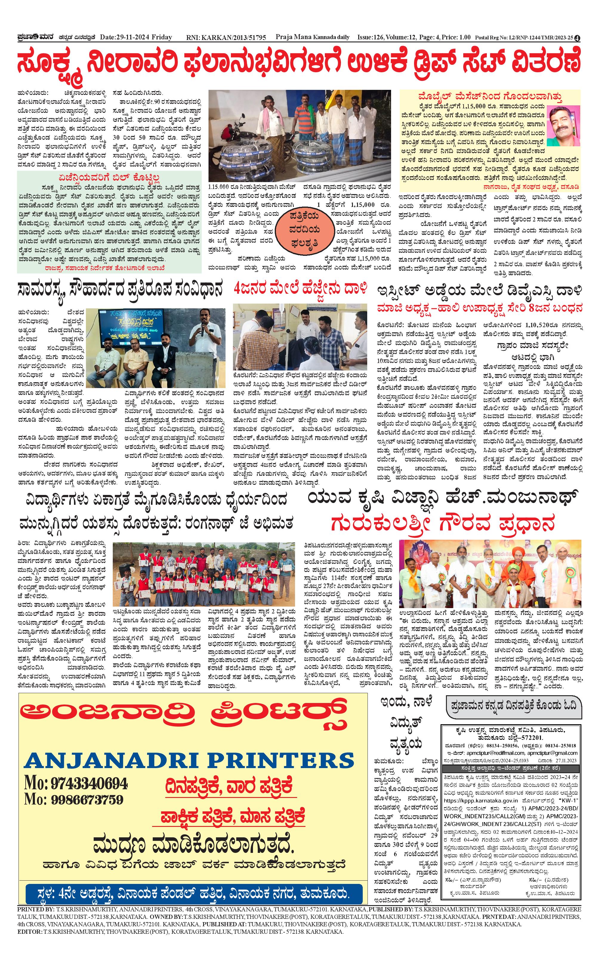 ಪ್ರಜಾಮನ 29 NOVEMBER 2024 Page: 4 November 29, 2024 << First << 4 >> Last >> Page 1Page 2Page 3Page 4 × ಪ್ರಜಾಮನ 29 NOVEMBER 2024 PRAJAMANA-page-001PRAJAMANA-page-002PRAJAMANA-page-003PRAJAMANA-page-004 << First << 4 >> Last >> PRAJAMANA-page-001PRAJAMANA-page-002PRAJAMANA-page-003PRAJAMANA-page-004 PRAJAMANA-page-004