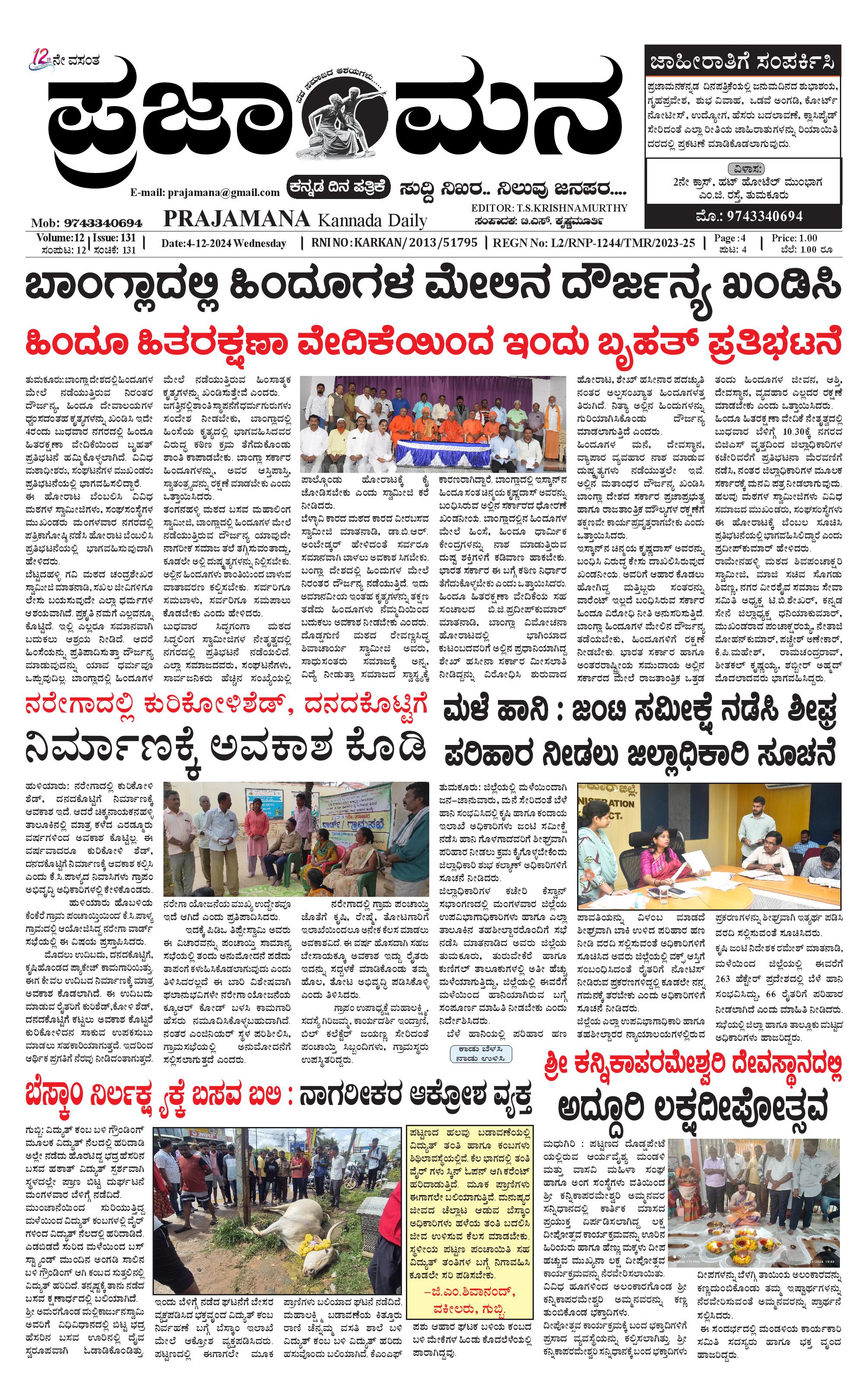 ಪ್ರಜಾಮನ 4 DECEMBER 2024 December 04, 2024 << First << 1 >> Last >> Page 1Page 2Page 3Page 4 × ಪ್ರಜಾಮನ 4 DECEMBER 2024 PRAJAMANA-page-001PRAJAMANA-page-002PRAJAMANA-page-003PRAJAMANA-page-004 << First << 1 >> Last >> PRAJAMANA-page-001PRAJAMANA-page-002PRAJAMANA-page-003PRAJAMANA-page-004 PRAJAMANA-page-001