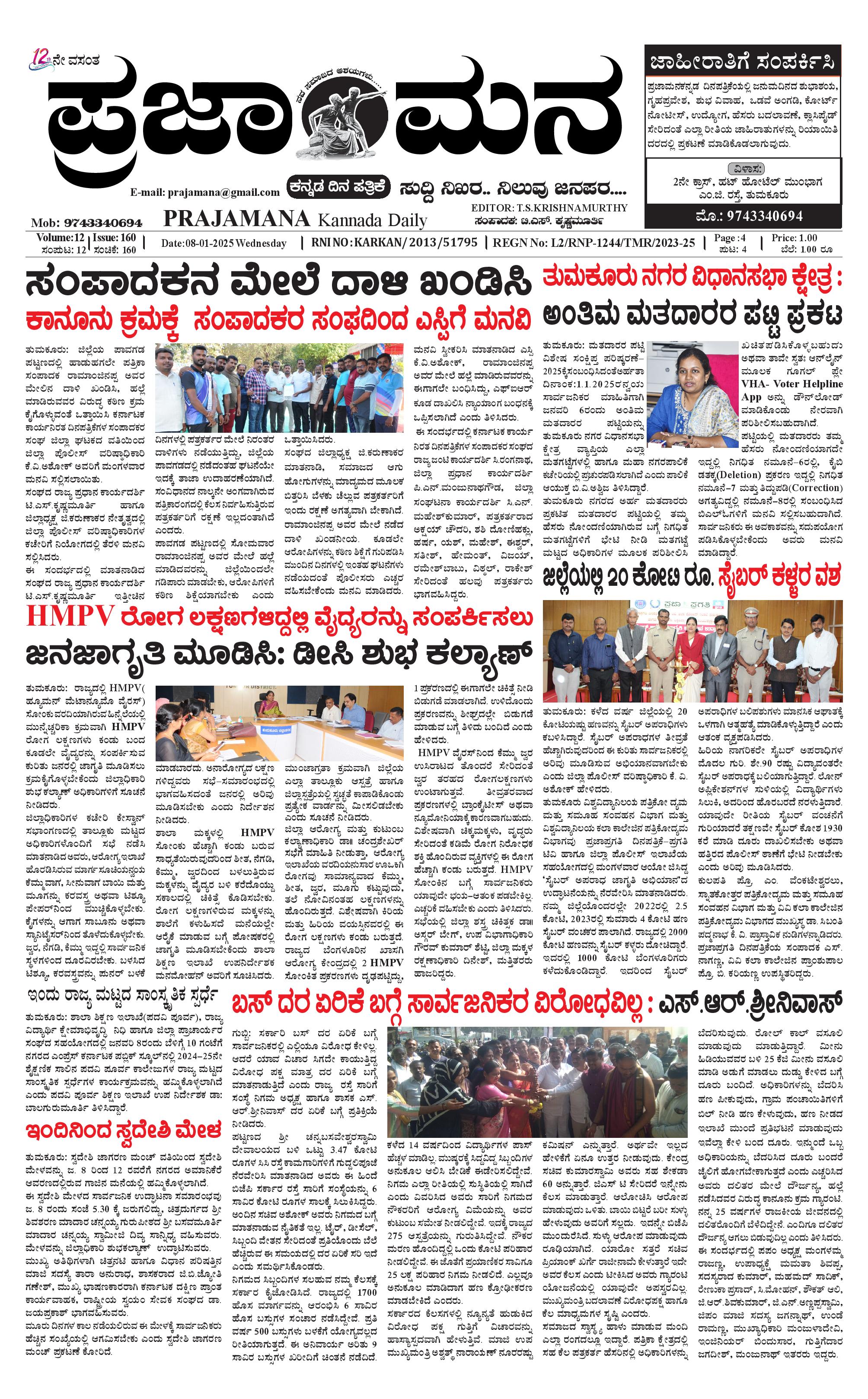 ಪ್ರಜಾಮನ 8 JANUARY 2025 January 08, 2025 << First << 1 >> Last >> Page 1Page 2Page 3Page 4 × ಪ್ರಜಾಮನ 8 JANUARY 2025 PRAJAMANA-page-001PRAJAMANA 1-page-002PRAJAMANA 1-page-003PRAJAMANA-page-004 << First << 1 >> Last >> PRAJAMANA-page-001PRAJAMANA 1-page-002PRAJAMANA 1-page-003PRAJAMANA-page-004 PRAJAMANA-page-001