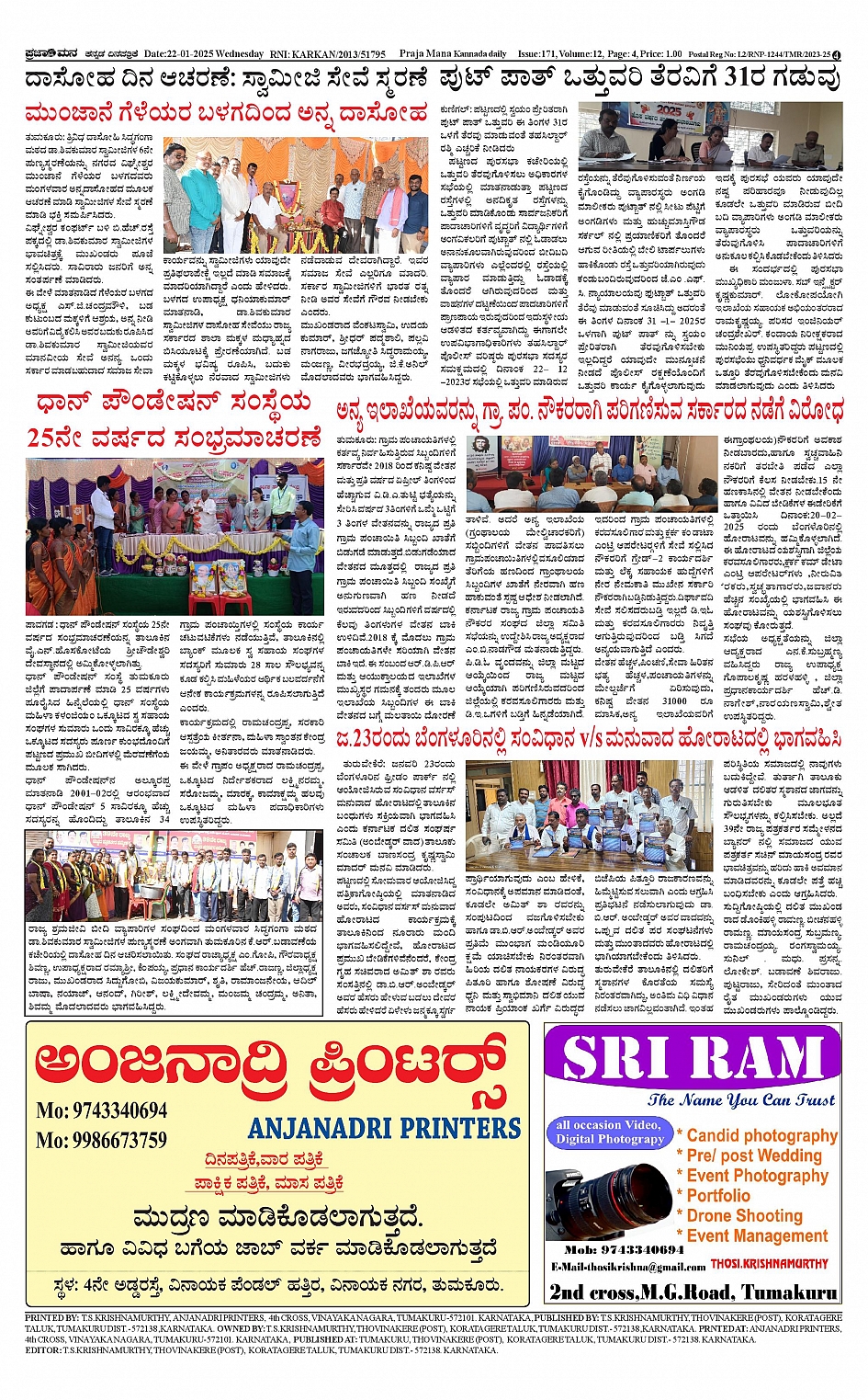 ಪ್ರಜಾಮನ 22 JANUARY 2025 Page: 4 January 22, 2025 << First << 4 >> Last >> Page 1Page 2Page 3Page 4 × ಪ್ರಜಾಮನ 22 JANUARY 2025 PRAJAMANA-page-001PRAJAMANA-page-002PRAJAMANA-page-003-2PRAJAMANA-page-004 << First << 4 >> Last >> PRAJAMANA-page-001PRAJAMANA-page-002PRAJAMANA-page-003-2PRAJAMANA-page-004 PRAJAMANA-page-004