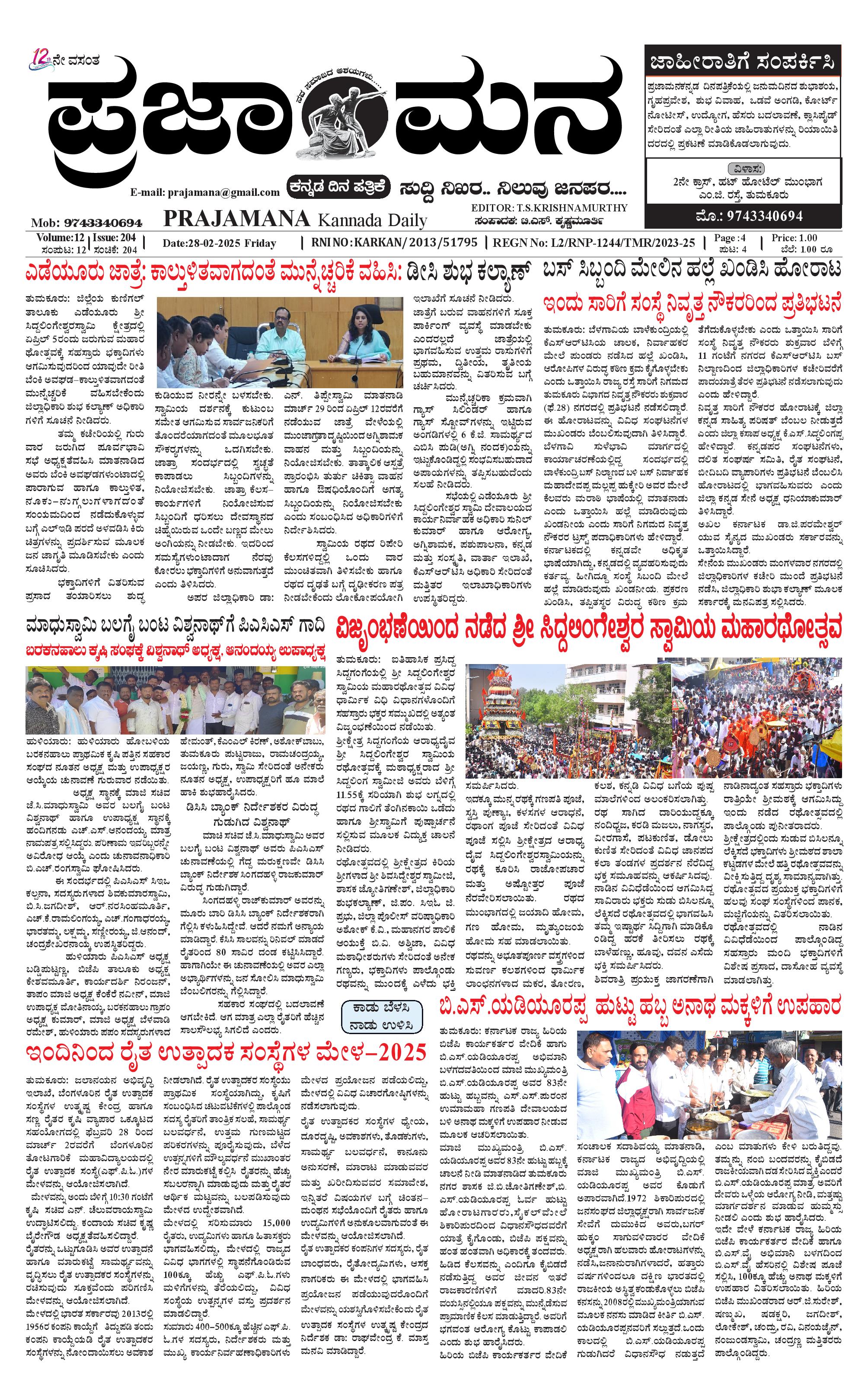 ಪ್ರಜಾಮನ 28 FEBRUARY2025 February 28, 2025 << First << 1 >> Last >> Page 1Page 2Page 3Page 4 × ಪ್ರಜಾಮನ 28 FEBRUARY2025 PRAJAMANA 1-page-001PRAJAMANA 1-page-002PRAJAMANA 1-page-003PRAJAMANA 1-page-004 << First << 1 >> Last >> PRAJAMANA 1-page-001PRAJAMANA 1-page-002PRAJAMANA 1-page-003PRAJAMANA 1-page-004 PRAJAMANA 1-page-001