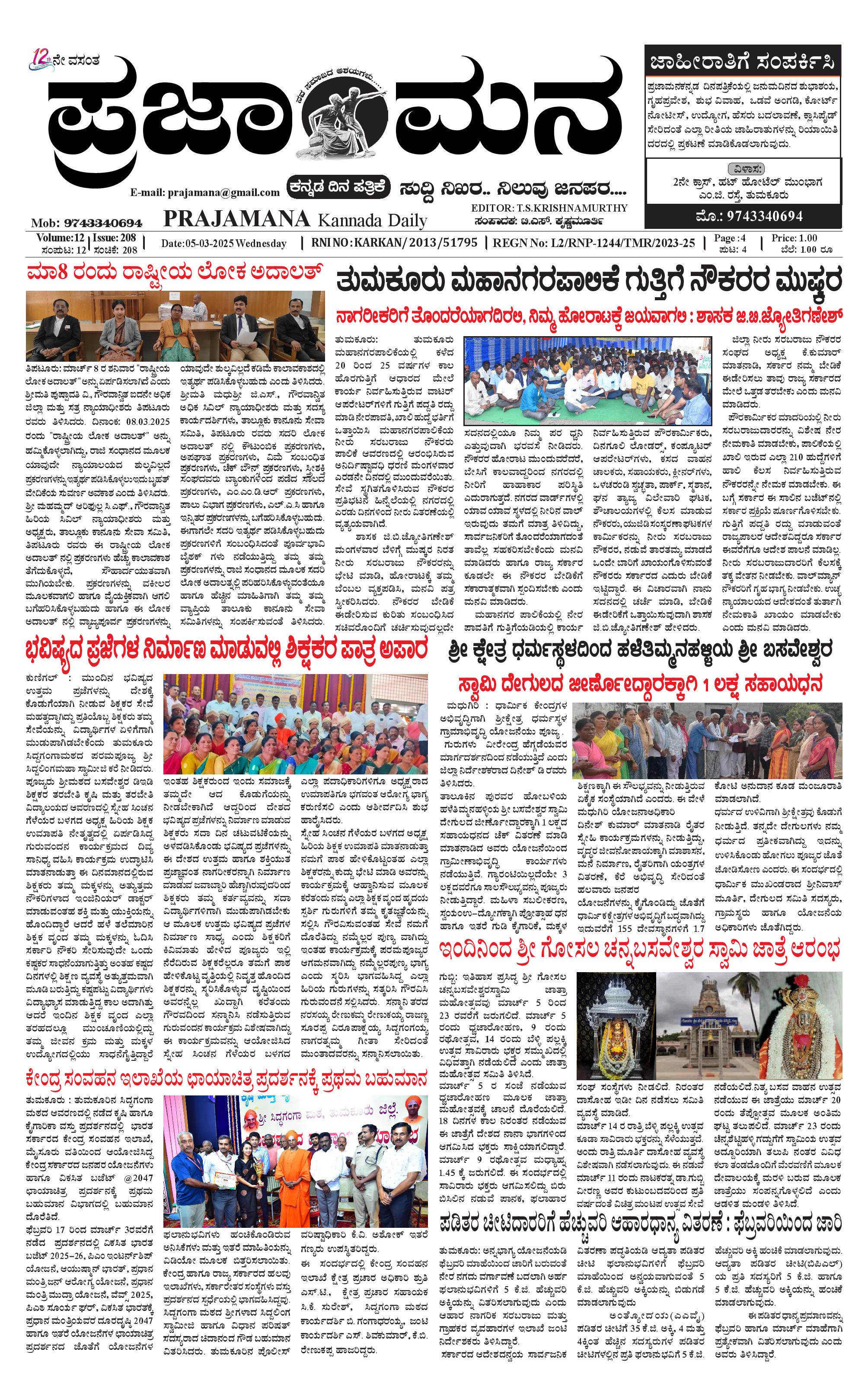 ಪ್ರಜಾಮನ 05 MARCH 2025 March 05, 2025 << First << 1 >> Last >> Page 1Page 2Page 3Page 4 × ಪ್ರಜಾಮನ 05 MARCH 2025 PRAJAMANA 1-page-001PRAJAMANA 1-page-002PRAJAMANA 1-page-003PRAJAMANA 1-page-004 << First << 1 >> Last >> PRAJAMANA 1-page-001PRAJAMANA 1-page-002PRAJAMANA 1-page-003PRAJAMANA 1-page-004 PRAJAMANA 1-page-001