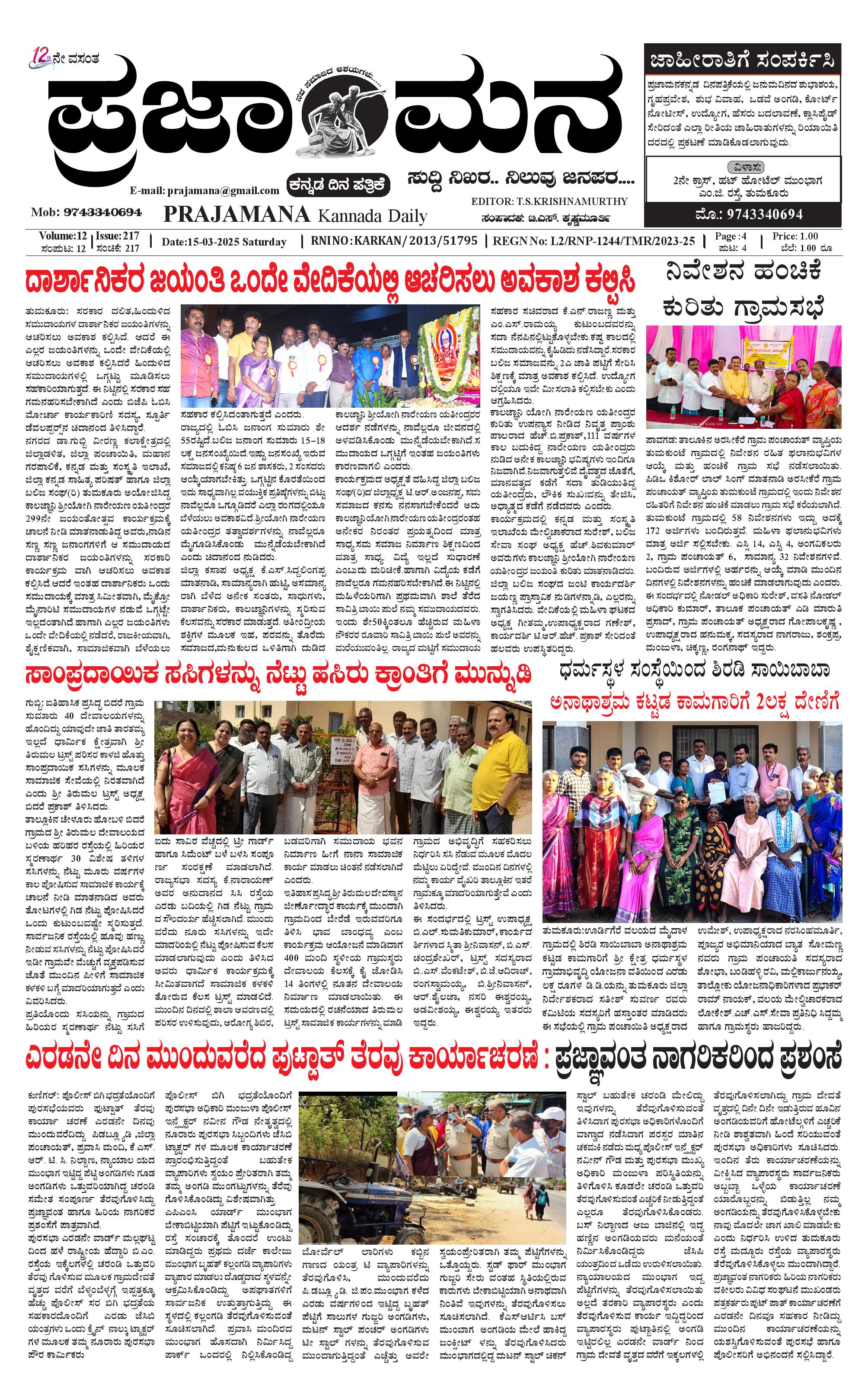 ಪ್ರಜಾಮನ 15 MARCH 2025 March 15, 2025 << First << 1 >> Last >> Page 1Page 2Page 3Page 4 × ಪ್ರಜಾಮನ 15 MARCH 2025 PRAJAMANA-page-001PRAJAMANA-page-002PRAJAMANA-page-003PRAJAMANA-page-004 << First << 1 >> Last >> PRAJAMANA-page-001PRAJAMANA-page-002PRAJAMANA-page-003PRAJAMANA-page-004 PRAJAMANA-page-001