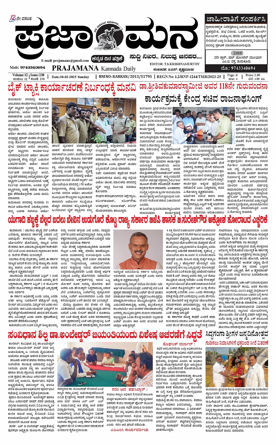 ಪ್ರಜಾಮನ 30 MARCH 2025 March 30, 2025 << First << 1 >> Last >> Page 1Page 2Page 3Page 4 × ಪ್ರಜಾಮನ 30 MARCH 2025 PRAJAMANA 11-page-001PRAJAMANA-page-002PRAJAMANA-page-003-1PRAJAMANA 11-page-004 << First << 1 >> Last >> PRAJAMANA 11-page-001PRAJAMANA-page-002PRAJAMANA-page-003-1PRAJAMANA 11-page-004 PRAJAMANA 11-page-001