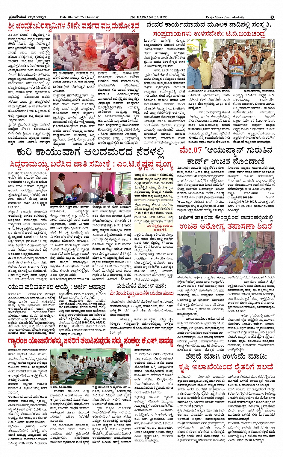 ಪ್ರಜಾಮನ 1 MAY 2025 Page: 3 May 01, 2025 << First << 3 >> Last >> Page 1Page 2Page 3Page 4 × ಪ್ರಜಾಮನ 1 MAY 2025 PRAJAMANA-page-001PRAJAMANA-page-002PRAJAMANA-page-003PRAJAMANA-page-004 << First << 3 >> Last >> PRAJAMANA-page-001PRAJAMANA-page-002PRAJAMANA-page-003PRAJAMANA-page-004 PRAJAMANA-page-003