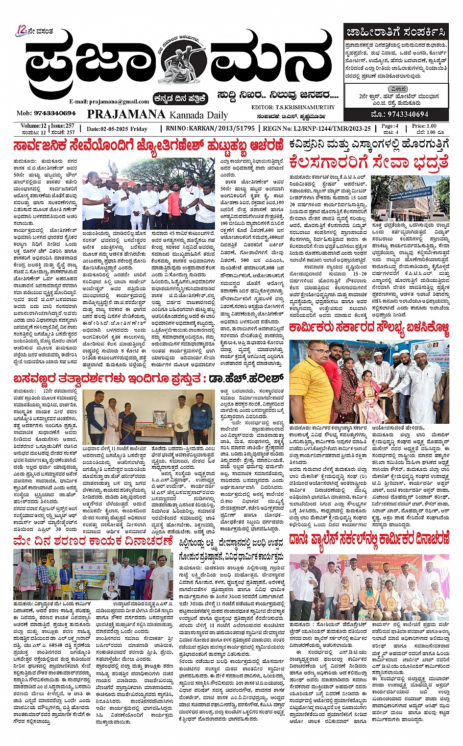 ಪ್ರಜಾಮನ 2 MAY 2025 May 02, 2025 << First << 1 >> Last >> Page 1Page 2Page 3Page 4 × ಪ್ರಜಾಮನ 2 MAY 2025 PRAJAMANA.11-page-001PRAJAMANA-page-002PRAJAMANA-page-003PRAJAMANA-page-004 << First << 1 >> Last >> PRAJAMANA.11-page-001PRAJAMANA-page-002PRAJAMANA-page-003PRAJAMANA-page-004 PRAJAMANA.11-page-001