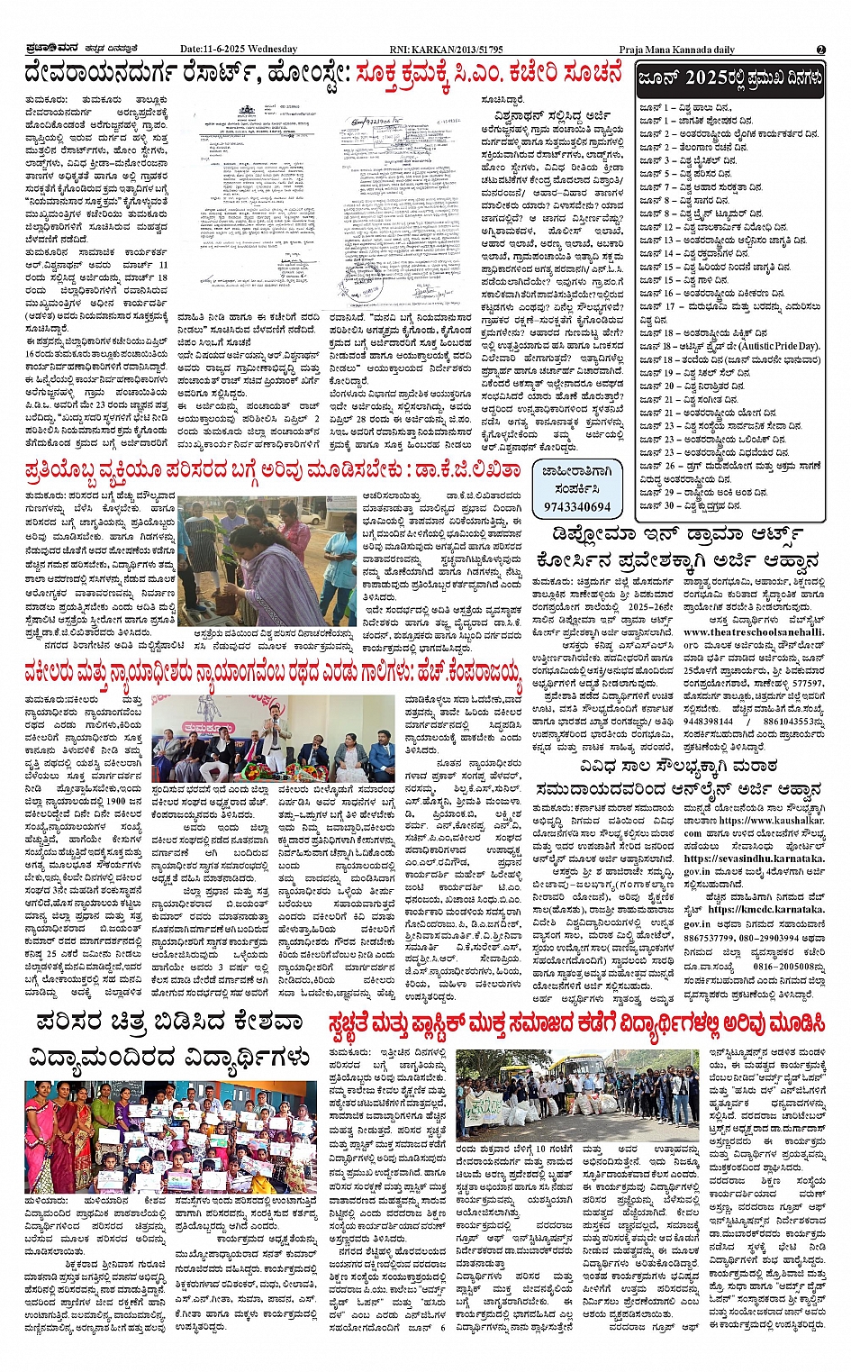 ಪ್ರಜಾಮನ 11 JUNE 2025 Page: 2 June 11, 2025 << First << 2 >> Last >> Page 1Page 2Page 3Page 4 × ಪ್ರಜಾಮನ 11 JUNE 2025 PRAJAMANA-page-001PRAJAMANA-page-002PRAJAMANA-page-003PRAJAMANA-page-004 << First << 2 >> Last >> PRAJAMANA-page-001PRAJAMANA-page-002PRAJAMANA-page-003PRAJAMANA-page-004 PRAJAMANA-page-002