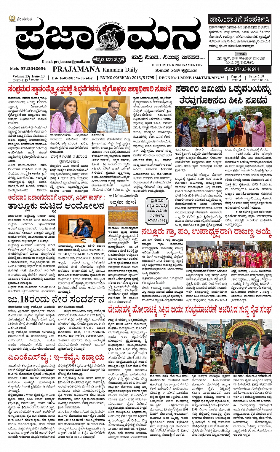 ಪ್ರಜಾಮನ 16 JULY 2025 July 16, 2025 << First << 1 >> Last >> Page 1Page 2Page 3Page 4 × ಪ್ರಜಾಮನ 16 JULY 2025 PRAJAMANA-page-001PRAJAMANA-page-002PRAJAMANA-page-003PRAJAMANA-page-004 << First << 1 >> Last >> PRAJAMANA-page-001PRAJAMANA-page-002PRAJAMANA-page-003PRAJAMANA-page-004 PRAJAMANA-page-001
