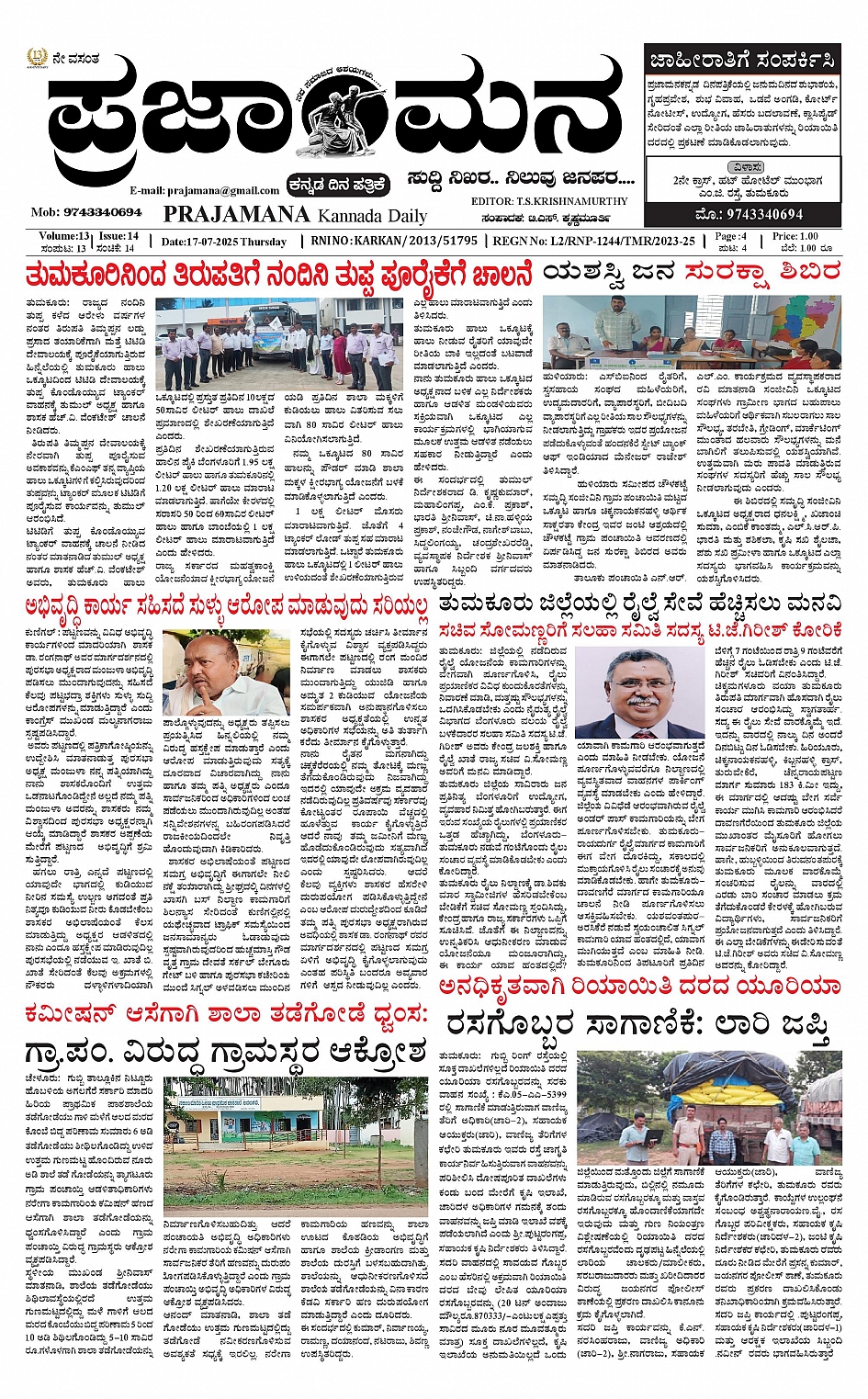 ಪ್ರಜಾಮನ 17 JULY 2025 July 17, 2025 << First << 1 >> Last >> Page 1Page 2Page 3Page 4 × ಪ್ರಜಾಮನ 17 JULY 2025 PRAJAMANA-page-001PRAJAMANA-page-002PRAJAMANA-page-003PRAJAMANA-page-004 << First << 1 >> Last >> PRAJAMANA-page-001PRAJAMANA-page-002PRAJAMANA-page-003PRAJAMANA-page-004 PRAJAMANA-page-001