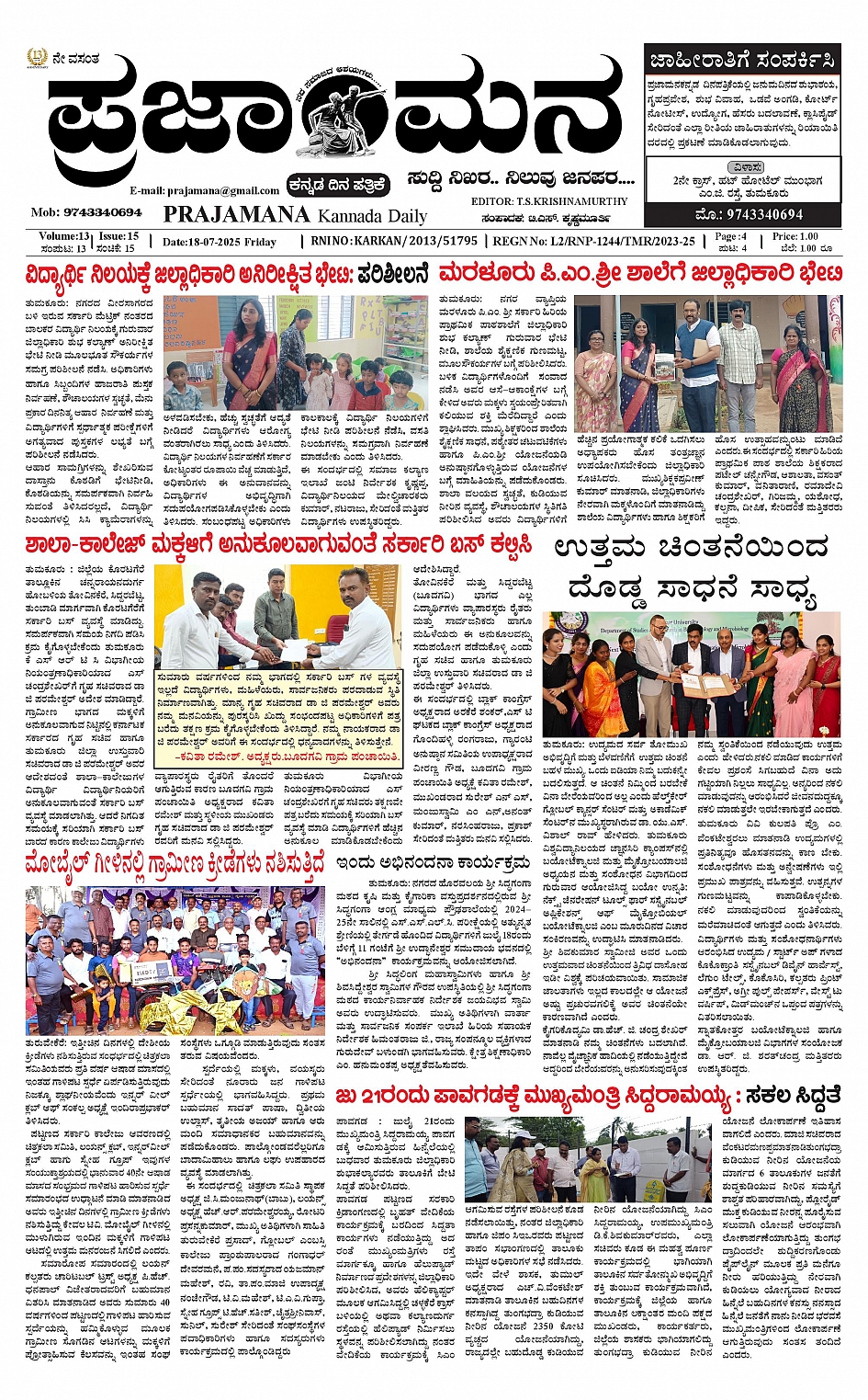 ಪ್ರಜಾಮನ 18 JULY 2025 July 18, 2025 << First << 1 >> Last >> Page 1Page 2Page 3Page 4 × ಪ್ರಜಾಮನ 18 JULY 2025 PRAJAMANA-page-001PRAJAMANA-page-002PRAJAMANA-page-003PRAJAMANA-page-004 << First << 1 >> Last >> PRAJAMANA-page-001PRAJAMANA-page-002PRAJAMANA-page-003PRAJAMANA-page-004 PRAJAMANA-page-001